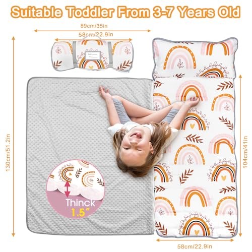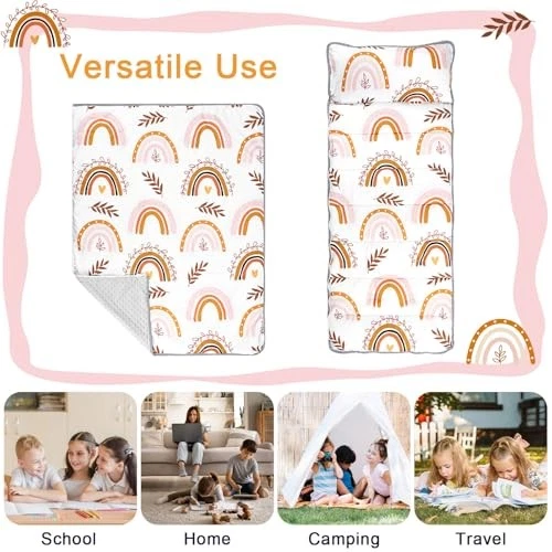 This toddler nap mat is a game-changer! The ultra-soft fleece and comfy pillow make naptime so cozy. My little one loves the rainbow colors and stays snug in the extra-large size. Perfect for daycare with its durable, easy-to-roll design. Super fast shipping and great quality—highly recommend!