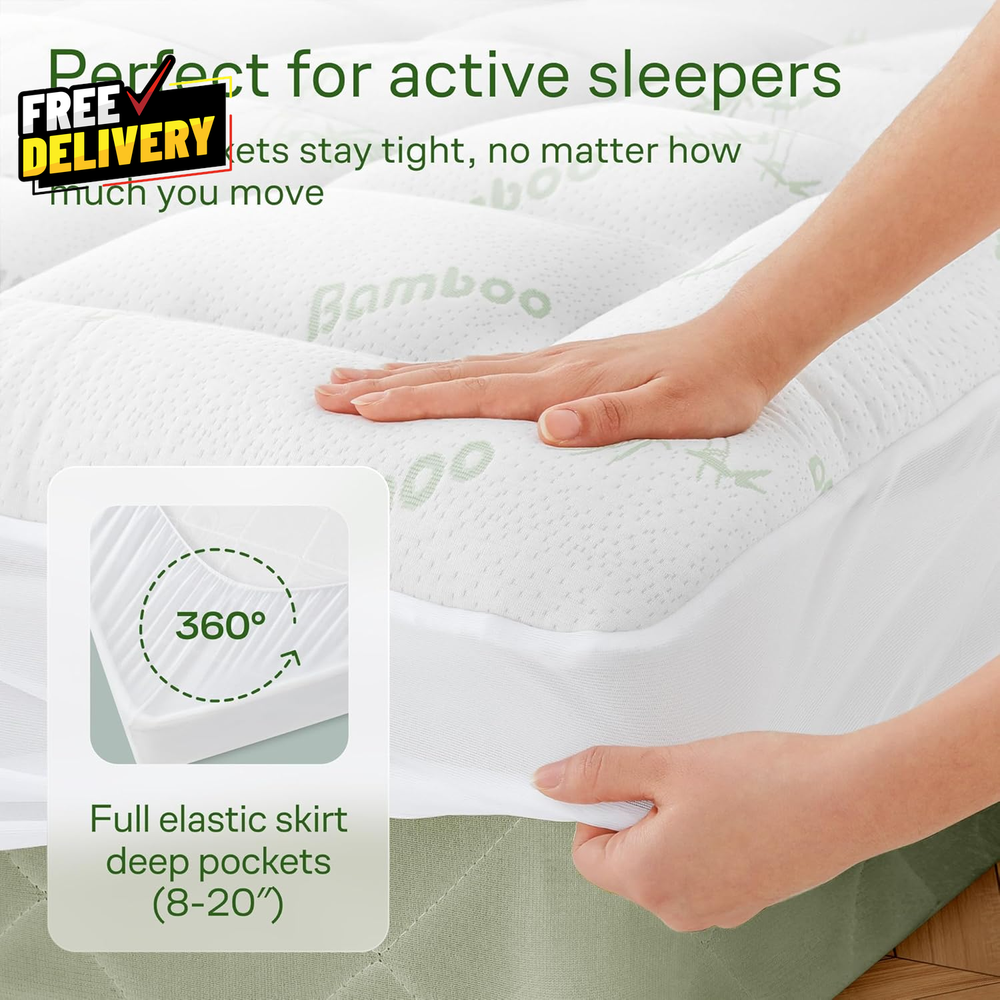 Ultra Soft Queen Bamboo Viscose Mattress Topper for Back Pain Relief