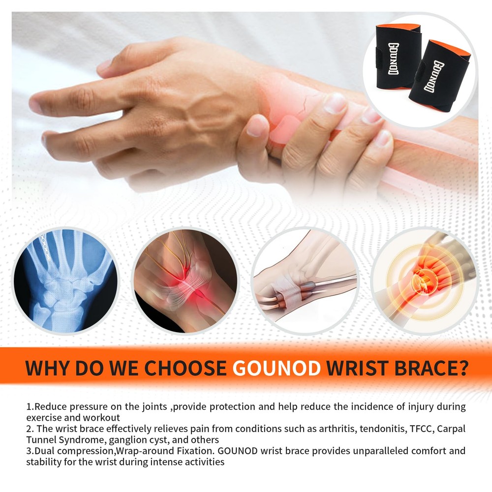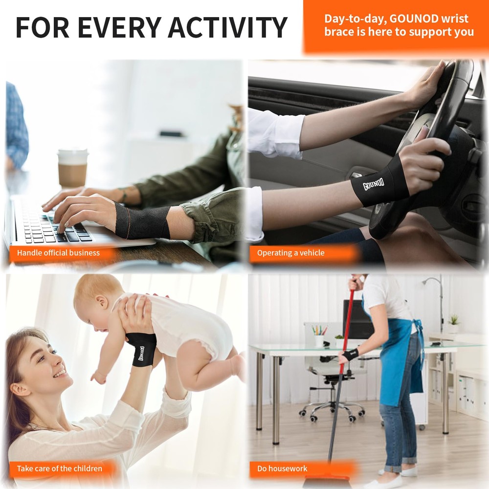 Effectively Relieve Pain: Wrist wrap prevents issues like computer typing injuries, sports injuries. Simultaneously, it effectively relieves pain from conditions such as arthritis, tendonitis, TFCC,Carpal Tunnel Syndrome, ganglion cyst, CMC, and other conditions. This wrist brace holds your hands and wrists in the correct position, providing just enough restriction to prevent wrist injuries High Quality Fabric: wrist wraps is made from a high-quality blend of 75% nylon/25% spandex, which easily withstands washing without stretching or losing its shape. The wrist support has a streamlined design, it is comfortable and fits well, lightweight and breathable, keeping you dry and sweat-free all day long. You won't even feel its existence, but rather enjoy the support it brings to you Comprehensive Wrist Stabilization: Our wrist wrap features dual compression and a wrap-around design, effectively covering the wrist joint area. It comprehensively supports tendons, ligaments, and muscles. Hook and loop fasteners ensure targeted pressure application at both the top and bottom of the wrist, providing quick and effective stabilization Customizable Compression: Our wrist wrap conforms to an ergonomic design, is universal and adjustable, allowing you to tailor the compression level to your liking without having to worry about size. It protects and stabilizes your wrists with gentle compression during and after workouts and training, which allows for comfortable wear and fits well, while ensuring your wrists are well-protected Meet Various Occasions: Wrist support is essential for activities such as yoga,basketball, tennis, golf, and cycling,It also applies to those who spend long hours on computer editing, driving. Whether you're working out or going about your daily work, wear a wrist compression sleeve for pain and instability caused by injuries and overuse injuries
