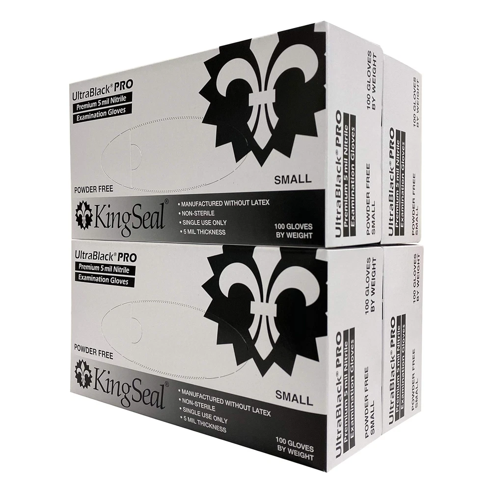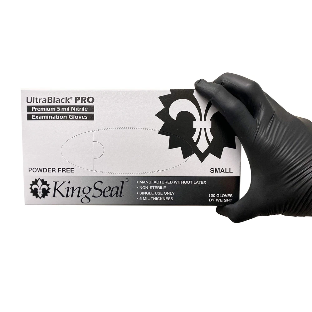 Description UltraBlack-PRO high performance medical grade nitrile gloves, black, latex free, 5 mil, textured, size Medium - 4 boxes 100 (400 pcs total). Thicker, 5 mil medical grade nitrile gloves suitable for any clinical, foodservice, tattoo, or lab/safety application Made from premium latex free nitrile, meets or exceeds all FDA, USDA, ASTM, CE (Europe) requirements - chemo and fentanyl tested More elasticity than vinyl gloves without the proteins that cause latex allergies Textured finish for greater dexterity and control, form fitting design Standard wrist length (9.5" length) and 5 mils thick; made in Malaysia