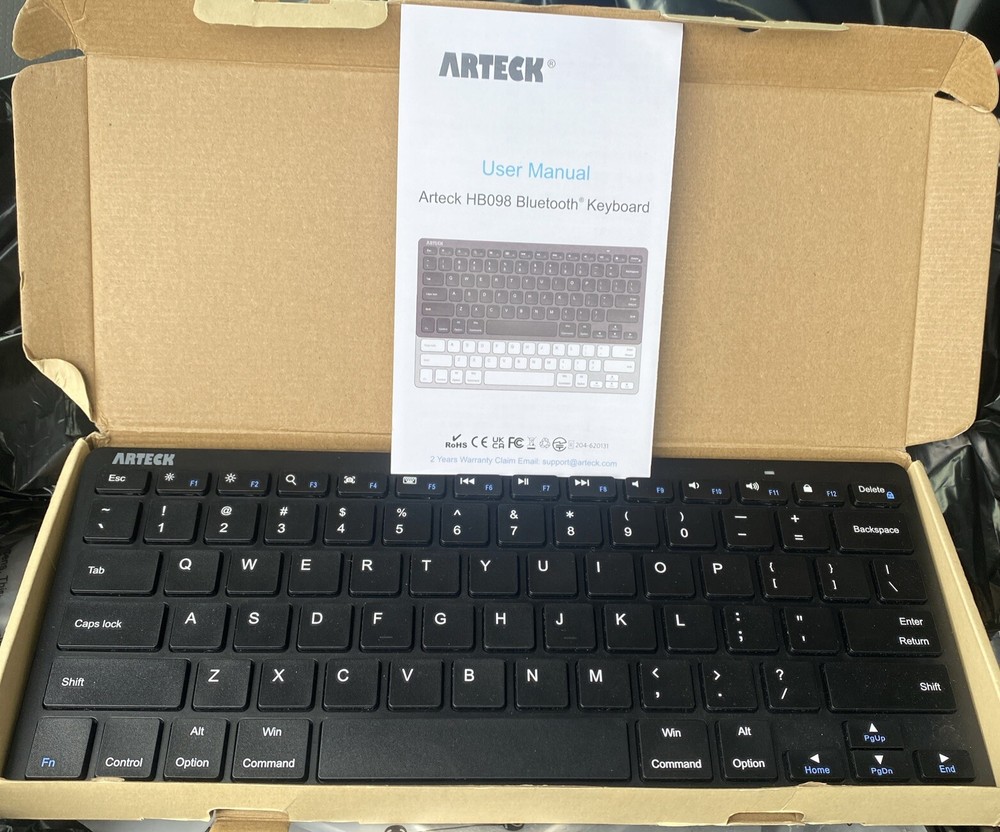 Cable-Free: Bluetooth Connection with your mobile devices such as tablets and mobile phones. Bring you more convenience when you need to type. Operating distance up to 10 meters. Broad Compatibility: Use with all four major operating systems supporting Bluetooth (iOS, Android, Mac OS and Windows), including iPad 10.2-inch / Air / iPad Pro / iPad 9.7-inch / iPad Mini / iPhone / Android Tablets like Samsung Galaxy Tab, Google Nexus / Windows, etc. Convenient Layout: QWERTY layout with hot keys customized for all iPads, including volume, music control, brightness, etc. Long Battery Life: Energy-saving design and automatic sleep mode allow up to 4 months between battery changes. (based on 2 hours' non-stop use per day) (2 X AAA batteries included) Package contents: Arteck HB098 Bluetooth Keyboard, 2 X AAA batteries, welcome guide, our 24-month warranty and friendly customer service.