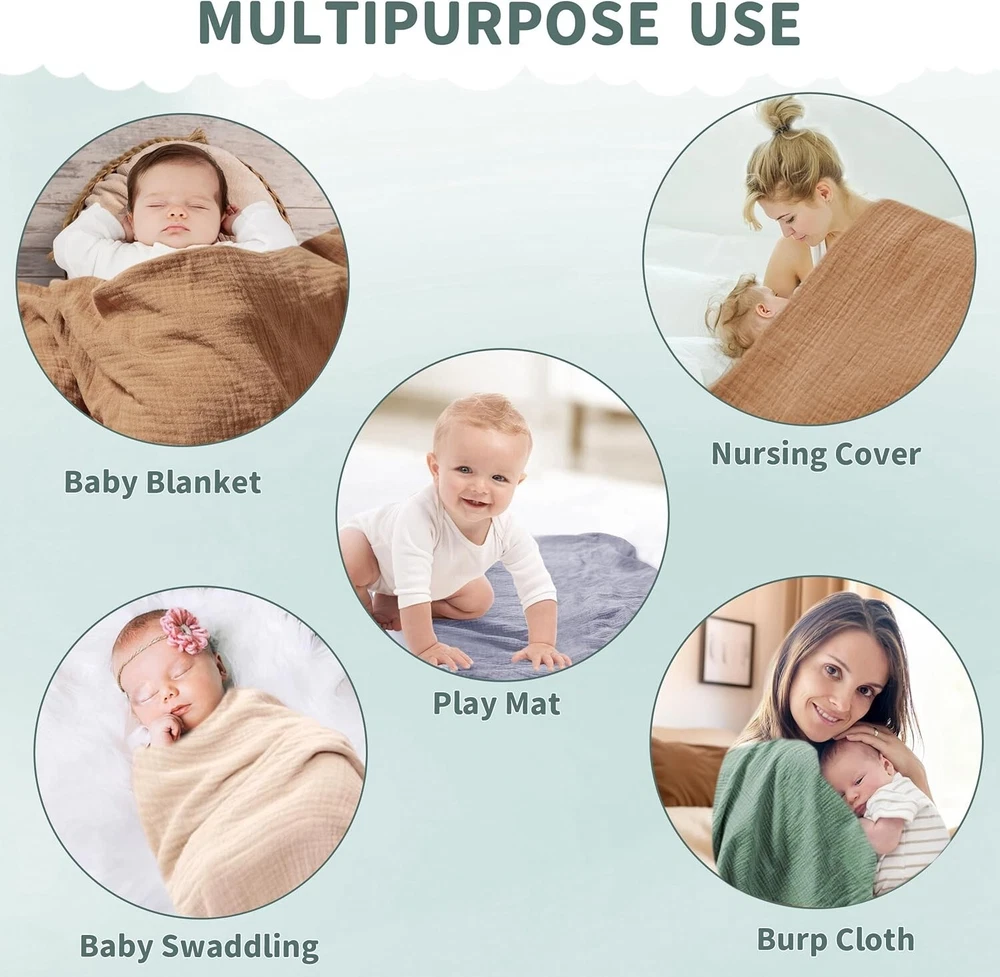 Ultra-Soft 2-Pack Muslin Swaddles - Breathable Comfort for Newborns, 41x41 in ‹ › ‹ › ‹ › ‹ › ‹ › ‹ › ‹ › ‹ › ‹ › Ultra-Soft 2-Pack Muslin Swaddles - Breathable Comfort for Newborns Size: 41x41 in Product Features: Ultra-Soft for Baby's Skin: Crafted from 100% muslin cotton, this high-density fabric is gentle on sensitive skin, ensuring a non-irritating experience, free of harmful substances. Multi-Functional: Our Baby Muslin Swaddle Blanket serves multiple purposes - from tummy-time mat, nursing cover, changing table, to stroller cover. Perfect for home or outdoor use, whether for bathing, feeding, or snuggling. Thin, Breathable & Absorbent: Each swaddle blanket is thin yet breathable, designed to keep your baby warm in cooler weather while allowing skin to breathe when it’s warm, regulating body temperature to prevent overheating. Set of Unisex Colors: Includes 2 swaddle blankets in neutral, unisex colors suitable for both baby boys and girls. Effortlessly matches any outfit, making it the ideal accessory for your little one. Easy to Clean: These muslin blankets are machine washable in cold water with mild detergent or can be hand-washed for easy maintenance. Ideal Baby Shower Gift: Each set is neatly packaged, making these soft, durable blankets a thoughtful gift for baby showers, registries, Christmas, housewarmings, or any special occasion. Why choose our Ultra-Soft Muslin Swaddles? For every parent who desires nothing but the best for their newborn, our Ultra-Soft 2-Pack Muslin Swaddles offer unparalleled comfort and versatility. The gentle fabric ensures your baby's skin is caressed in softness, while the multi-functional use provides a practical solution for daily needs. Perfectly designed to regulate warmth and breathability, these swaddles keep your little one cozy without the worry of overheating. Make a thoughtful choice and give the gift of comfort and style. Order your 2-Pack Muslin Swaddles today and experience the perfect blend of functionality and elegance! Shipping Free & Fast Shipping - We offer free shipping to most of the USA with a normal delivery time of 3-7 days. However, due to the current situation, additional delivery time (up to 3 weeks) may be required for some items. Alternative Carriers - We may use alternative carriers (e.g. USPS, FedEx, UPS, etc.) to ensure your package arrives safely and on time. Due to the use of multiple carriers, we are unable to provide a tracking number automatically. Handling Time - Orders are processed and shipped within 1-2 business days of receiving cleared payment. Shipping Restrictions - Shipping to Alaska, Hawaii, Puerto Rico, Guam, and other US territories may incur shipping charges or delivery restrictions. Please contact us before ordering, or your order can be refunded/cancelled. State Restrictions - There may be restrictions based on your state of purchase. For example, certain items may not be shipped to California due to state regulations. Contact for Tracking Updates - If you require tracking updates or have any concerns about the delivery of your order, please feel free to contact us, and we will be happy to assist you. Return 30-Day Hassle-Free Returns - We want you to be completely satisfied with your purchase. If you are not, you can return the item within 30 days of receiving it for a full refund or exchange. Easy Return Process - To start a return, simply contact us and we will provide you with a prepaid return shipping label and detailed instructions. Restocking Fee - There are no restocking fees for returns. However, the buyer is responsible for return shipping costs if the return is not due to a seller's error. Refund Processing Time - Refunds will be processed within 5 business days of receiving the returned item in its condition. Payment We accept all major credit cards, PayPal, and Apple Pay for your convenience. Your payment information is secure and encrypted to ensure a safe and seamless transaction. Please complete your payment within 3 days of purchase to avoid any delays in shipping. Feedback Your feedback is extremely important to us. We strive to provide the best products and customer service possible. If you are satisfied with your purchase, please take a moment to leave us a positive review. If you have any concerns or issues with your order, please contact us before leaving negative feedback. We are committed to resolving any problems and ensuring your satisfaction. Contact Us If you have any questions or concerns, please feel free to out to our customer support team. You can contact us through the eBay messaging system. We are available Monday to Friday, 9:00 am to 5:00 pm EST, and we will do our best to respond to your inquiry within 24 hours. Buy it now and enjoy a pleasant shopping experience! MPN: Newborn_Swaddle_Blankets Size: 41 x 41 inches Model: Newborn Swaddle Blankets Unit Quantity: 2 Pack Features: Breathable,Ultra-Soft,Multi-Functional,Thin,Absorbent Type: Swaddle Color: Beige Material: Muslin Cotton Gender: Unisex To Fit: Cradle Unit Type: Unit