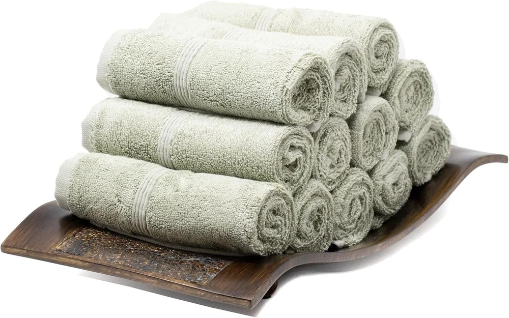 Ultra-Soft Seagrass Green Washcloths | 700 GSM Premium Bamboo & Cotton - 12 Pack