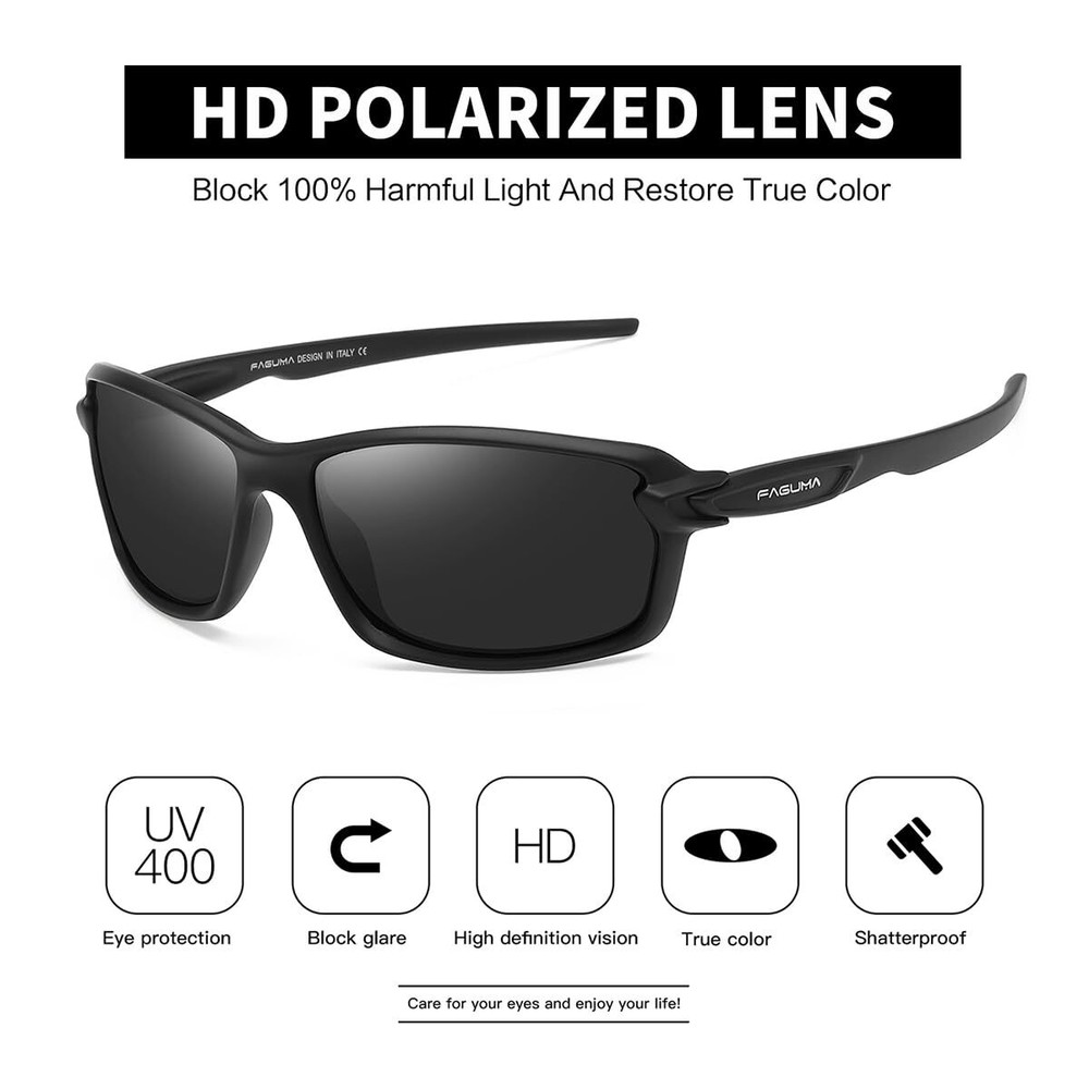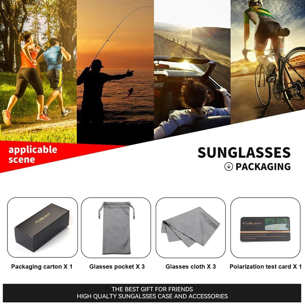 TAC Polarized Lens:Offering UV400 Protection,eliminate reflected light and scattered light,cut glare and protect eyes perfectly. ULTRALIGHT,STYLISH,DURABLE:Lightweight design is ideal for usage by motorcycle and cycling,driving,running,fishing,climbing,trekking or other outdoor activities enthusiasts.stylish design,with rich color combinations of frames and lens.Polycarbonate lens and frames are impact,scratch resistant,durable and unbreakable. Best Customer Service:Any questions about our products,please contact us.We will provide the best service until our customers are satisfied.