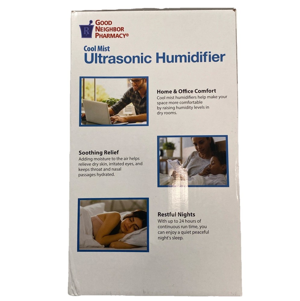Ultrasonic Cool Mist Humidifier No Filters Required Blue, Med Rm, Visible Mist New in box