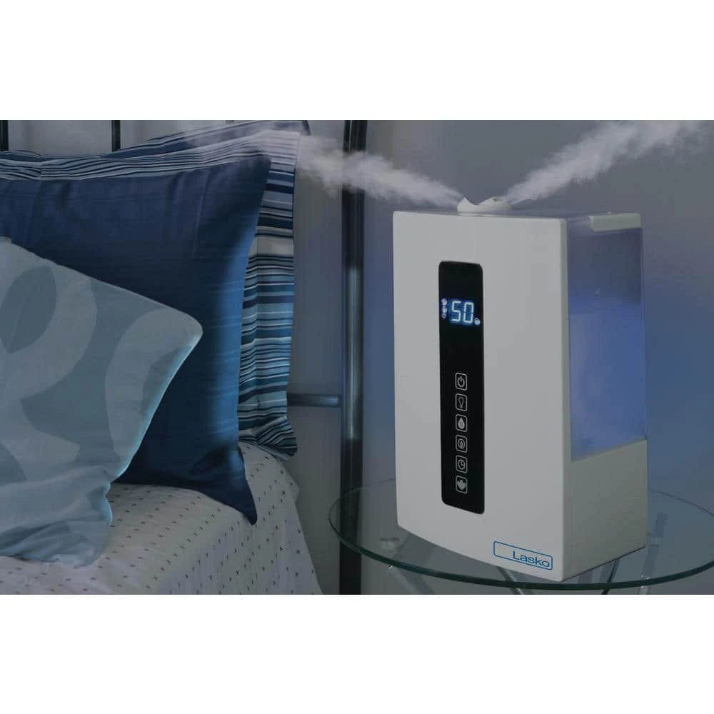Quiet Ultrasonic Digital Warm And Cool Mist Humidifier Store New Arrivals Add to Saved Sellers View Feedback Contact Quiet Ultrasonic Digital Warm And Cool Mist Humidifier 3 mist flow options for customized room humidity Adjustable LED lighting perfect for use at night Patented safety fuse technology ensures reliable operation Humidifiers create a soothing atmosphere in your home. According to the Mayo Clinic, indoor humidity is best between 30% to 50% and can help soothe common dry air problems of the skin, throat, and sinuses. Additionally, proper humidity levels can create an atmosphere for improved sleep and reduce static electricity from dry air. Use warm mist in winter months and cool mist year-round. The Quiet Ultrasonic Digital Cool and Warm Mist Humidifier from Lasko creates soothing humidity for your room. Aim the mist nozzle where you need it most and choose from 3 mist flow options so you can customize the humidity for your room. The large, removable tank is easy to refill. Use only distilled water in this humidifier. The humidifier runs up to 100-hours on the low setting and will automatically shut off when the tank is empty. Regular maintenance is a breeze because there are no filters to replace, plus the included cleaning brush can be stored conveniently right on the unit. Easy-to-use electronic controls for setting timer mode (12-hour timer), plus adjusting LED lighting, mist options and humidistat. Features patented safety fuse technology. Comes fully assembled. Air Treatment Product Type: Tabletop Humidifier Color: White Color Family: Whites Control Type: Digital Humidifier Features: Adjustable Humidistat,Automatic Shut Off,Timer Humidifier Tank Capacity (Gallons): 1.29 Included Items: No additional items included Moisture dispersion type: Warm & Cool Mist Number of Air Filters Included: 0 Number of Fan Speeds: 3 Power Options: Plug-in Product Weight (lb.): 5 lb Room Size (sq. ft.): Medium (400-1000 sq. ft.) Run time (hours/tank): 100 Voltage (V): 120 Water Filter Replacement Model#: not applicable Certifications and Listings: ETL Listed Maximum Coverage Area (sq. ft.): 600 Product Depth (in.): 5.7 in Product Height (in.): 14.4 in Product Width (in.): 9.8 in ABOUT US Customer service is our top priority! Please be sure to read the description thoroughly to make sure that this is the item you want before making a purchasing decision. If you have any questions about this item, please contact us via eBay messages before placing your order. We make every effort possible to accurately describe and depict the items. Please be aware that slight variations in color may be due to differences in lighting and computer monitor resolutions. All items are in stock at the time of listing; however, in the unlikely and unforeseen event that we are unable to fulfill your order through any of our networked warehouses, we will notify you as quickly as possible and offer you a 100% refund on your purchase. Thank you for shopping with us. We appreciate your business! SHIPPING We provide fast, free shipping. Most items are shipped within 3-5 business days of receiving cleared payment. We ship to the lower 48 contiguous United States only. We do not ship to P.O. Boxes or APOs. For select items, we ship internationally through eBays Global Shipping Program. We do ship most of our smaller items internationally using eBays Global Shipping Program. If ordering electrical items outside of the U.S., please note that they will come equipped with a standard U.S. voltage plugs. You will need a suitable adapter to use the item in your country. Certain restrictions apply. Standard or Economy Shipping is ALWAYS FREE! You will be notified via eBay messages as soon as your items ship. Special Notice for Freight Items: If an item ships via Freight (Truck) Delivery, a valid phone number will be required so that we can contact you to schedule delivery. The item may be delivered with curbside delivery. An adult signature will be required. Please be sure to have available help on hand to assist you with moving the item to the desired location in or outside of your home. Freight items must be inspected upon delivery. In the unlikely event that damage is observed, you MUST refuse delivery and note the damage on the shipping receipt and send it back via the Freight carrier. Returns will not be accepted on Freight items after they have been delivered, inspected, and the driver has left the premises. RETURNS When returning an item, it must be in all of the original packaging and include all of the original accessories or items that came with it. The item and package should be in original and perfect condition. You will be required to cover shipping on the return of non-defective items. All returns MUST be done within 30 days of date of purchase. Please note that we cannot give refunds or replacements after the 30 day limit has expired. When sending in a return, please note that it can take up to 7 business days for the return to be processed. We do our best to process as quickly as possible. We are extremely fair, and in the rare event of something out of the ordinary happening with our products or shipping, we will gladly work with you to find a fair resolution. PAYMENT We accept all of the standard payment options offered at eBay checkout. To provide a safe experience, eBay only allow payment methods that offer strong protection for buyers and sellers. Your order will be processed pending receipt of cleared payment. Sales tax may be charged depending on your location. DISCLAIMER We are sorry, but we do not honor product exchange requests. If you need to exchange an item received, you will need to go through the normal returns process identified in our returns section and then order the correct item, if it is still available. Orders are processed immediately and dispatched to fulfillment as soon as they are received. For this reason, we are typically unable to honor cancellation requests. If you need to cancel the t