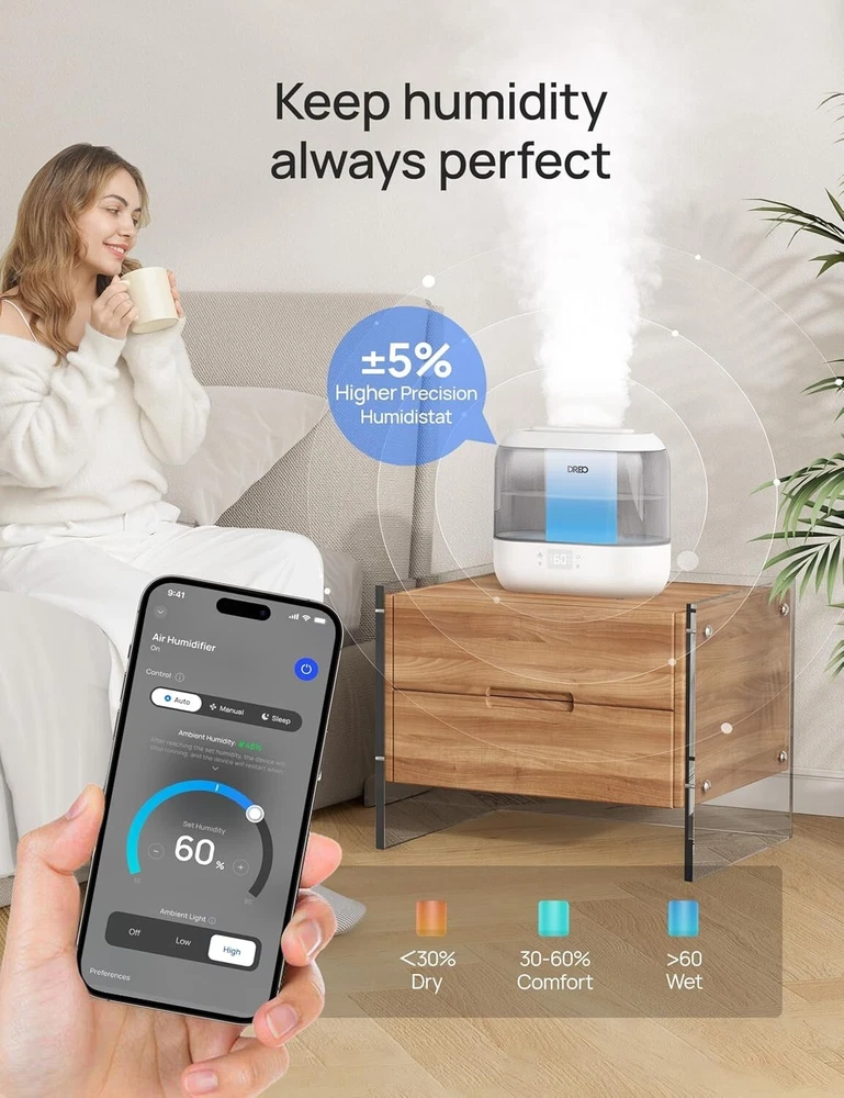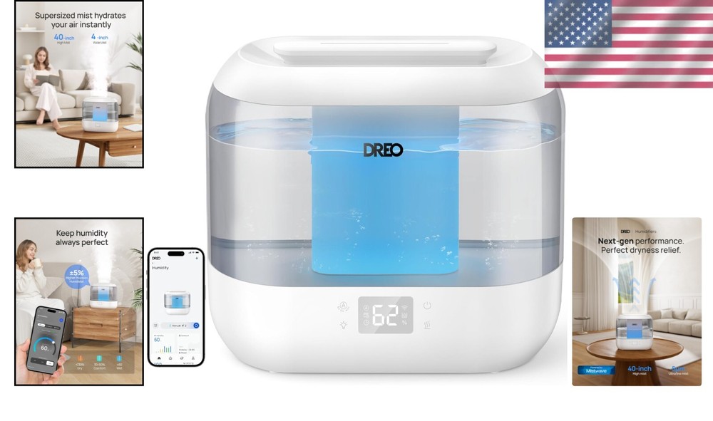 Versatile Ultrasonic Humidifier for Baby, Home & Office with Ambient Light ‹ › ‹ › ‹ › ‹ › ‹ › ‹ › ‹ › ‹ › ‹ › ‹ › ‹ › Versatile Ultrasonic Humidifier for Baby, Home & Office Key Features: Precise Humidity Control: With advanced algorithms and Auto Mode, maintain optimal humidity levels with precision twice higher than traditional models. Smart Ambient Light: Stay informed about humidity changes with the intuitive ambient light feature, enhancing your comfort effortlessly. Voice and App Control: Adjust settings with ease using Alexa, Google Assistant, or the app from anywhere, providing convenience when you need it most. Supersized Mist Output: Equipped with 's Dual-intake design, this humidifier delivers mist 3 times larger than conventional models for rapid dry air relief. Customizable Mist Levels: Choose from three different mist levels and direct the mist flow with its 30° tiltable nozzle, ensuring the ideal humidity level in any space. Safety Features: This thoughtful design includes automatic shut-off when the tank is empty, ensuring peace of mind for nursery use or plant care. Extended Comfort: The 4L tank provides 32 hours of uninterrupted humidified air, with an acoustic design that keeps noise levels at a soothing 28dB for a restful night. Why Choose Our Ultrasonic Humidifier? Transform your environment into a haven of comfort with our Ultrasonic Humidifier, meticulously designed for your baby’s nursery, home, or office. With its whisper-quiet operation, precise humidity control, and smart technology, you can breathe easier and feel rejuvenated in every space you occupy. Don’t let dry air disrupt your comfort. Experience the tranquil benefits of our Ultrasonic Humidifier and relish in the serene atmosphere it creates for you and your loved ones. Order now to elevate your daily comfort routine! Shipping Free & Fast Shipping - We offer free shipping to most of the USA with a normal delivery time of 3-7 days. However, due to the current situation, additional delivery time (up to 3 weeks) may be required for some items. Alternative Carriers - We may use alternative carriers (e.g. USPS, FedEx, UPS, etc.) to ensure your package arrives safely and on time. Due to the use of multiple carriers, we are unable to provide a tracking number automatically. Handling Time - Orders are processed and shipped within 1-2 business days of receiving cleared payment. Shipping Restrictions - Shipping to Alaska, Hawaii, Puerto Rico, Guam, and other US territories may incur shipping charges or delivery restrictions. Please contact us before ordering, or your order can be refunded/cancelled. State Restrictions - There may be restrictions based on your state of purchase. For example, certain items may not be shipped to California due to state regulations. Contact for Tracking Updates - If you require tracking updates or have any concerns about the delivery of your order, please feel free to contact us, and we will be happy to assist you. Return 30-Day Hassle-Free Returns - We want you to be completely satisfied with your purchase. If you are not, you can return the item within 30 days of receiving it for a full refund or exchange. Easy Return Process - To start a return, simply contact us and we will provide you with a prepaid return shipping label and detailed instructions. Restocking Fee - There are no restocking fees for returns. However, the buyer is responsible for return shipping costs if the return is not due to a seller's error. Refund Processing Time - Refunds will be processed within 5 business days of receiving the returned item in its original condition. Payment We accept all major credit cards, PayPal, and Apple Pay for your convenience. Your payment information is secure and encrypted to ensure a safe and seamless transaction. Please complete your payment within 3 days of purchase to avoid any delays in shipping. Feedback Your feedback is extremely important to us. We strive to provide the best products and customer service possible. If you are satisfied with your purchase, please take a moment to leave us a positive review. If you have any concerns or issues with your order, please contact us before leaving negative feedback. We are committed to resolving any problems and ensuring your satisfaction. Contact Us If you have any questions or concerns, please feel free to reach out to our customer support team. You can contact us through the eBay messaging system. We are available Monday to Friday, 9:00 am to 5:00 pm EST, and we will do our best to respond to your inquiry within 24 hours. Buy it now and enjoy a pleasant shopping experience! UPC: Not Set Unit Quantity: 4 Application: Personal,Whole House,Whole Room,Office Color: Gray Features: Automatic Shut Off,Digital Display,Night Light,Quiet Operation,Voice Control,Touch Control,App Control,Timer,Adjustable Mist Levels Room: Any Room,Bedroom,Living Room,Office,Study Room,Nursery Recommended Room Size: Large Power Source: Electrical Smart Home Compatibility: Amazon Alexa,Google Home,Universal Material: Plastic Smart Home Protocol: Wi-Fi Brand: Unbranded Type: Tabletop Humidification Method: Ultrasonic Model: Not Set Tank Capacity: 4.5 gal Voltage: 150 V Year Manufactured: Not Set Manufacturer Warranty: Not Set Power: 26 W Item Depth: 11 in Item Height: Not Set Item Width: Not Set Item Weight: 3.12 lb Timer Control: Timerless MPN: Not Set Number of Speeds: Variable Country/Region of Manufacture: Not Set Finish: Matte Coverage: 300 sq ft Operating Sound Rating: 28 dB Unit Type: Unit