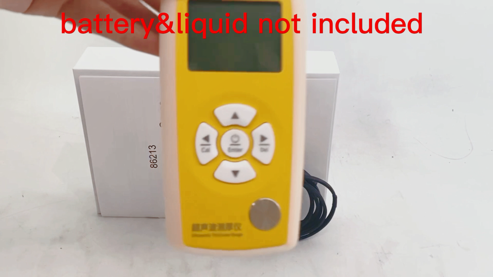 Ultrasonic Thickness Gauge Tester Meter for Metal Pipe Wall Steel Glass Plastics Note: Battery&Liquid not Included During The Shipping !!! Application In many industries, It is essential to measure the wall thickness to confirm the condition of the material for the normal running of the items or structure safety. ultrasonic thickness gauge can be widely used in testing the thickness of various accessories or metallic structure to check them whether to be repaired or changed such as ships, tanks, pipes or steel structure. The gauge is applicable for petroleum, chemical, metallurgical, shipbuilding, aviation and aerospace various fields. Parameters Parameters Values Measuring Range 0.8-350mm(45#steel) Resolution 0.8-100mm:0.01mm 100-350mm:0.1mm Accuracy 0.8-10mm:±0.05mm 10-350mm:±0.5%reading Sound Velocity Range 1000~9999m/s Probe Specification 5MHz φ10 dual-crystal probe Display 240 * 160 dot matrix LCD Unit mm/inch Power Supply 2 * AA alkaline dry batteries (not include) Host Size 142 * 72 * 28 mm Weight about 230g Working temperature range -10~50℃,0~85%RH(No condensation) Storage temperature range -10~60℃,0~85%RH(No condensation) Feature 1. Ultrasonic double crystal probe The gauge probe employs a double crystal transducer consisted of two independent crystals separated by an acoustic barrier. One crystal sends ultrasonic pulses, and another is responsible for receiving them. The probe is highly sensitive and can effectively reduce clutter, and the probe housing is made of stainless steel, which is hard and durable 2. Automatic Gain switchable Some materials are good conductors of sound and some are not. For the latter, the meter can switch the Gain freely which is to amplify the ultrasonic signal so that the emitted pulse is accurately captured by the transducer as it propagates, and obtains accurate data 3. Two measurement modes: QC Mode/Statistics Mode Ultrasonic thickness tester features two measurement mode: QC mode and statistics mode. Allowing to set upper and lower limits to check the problem areas by prompting NG under the QC mode. It will count maximum, minimum and average values of data in Statistics mode. 4. Excellent Timer chips provide fast, accurate readings Ultrasonic thickness gauge calculates the material thickness by sound velocity and the time taken between the emitted pulse and the detected echo, a precision timing chip can bring the user the accurate time to get the accurate data 5. Built-in sound velocity of multiple materials It already contains the velocities of several common metallic (such as iron, copper, aluminum) and non-metallic materials (plastics, ceramics, plexiglass) as well as other objects and the user are not required to find them separately 6. Sound velocity can be measured according to thickness T he tester can reverse the sound velocity of the material based on the known thickness and measurement results. And the instrument can test irregular materials of the same components as the materail whose thickness can be measured