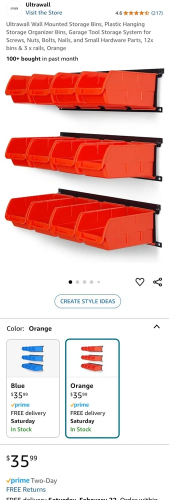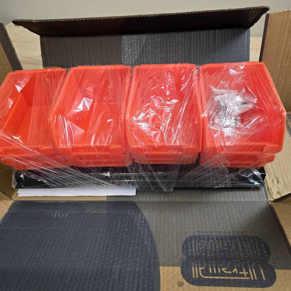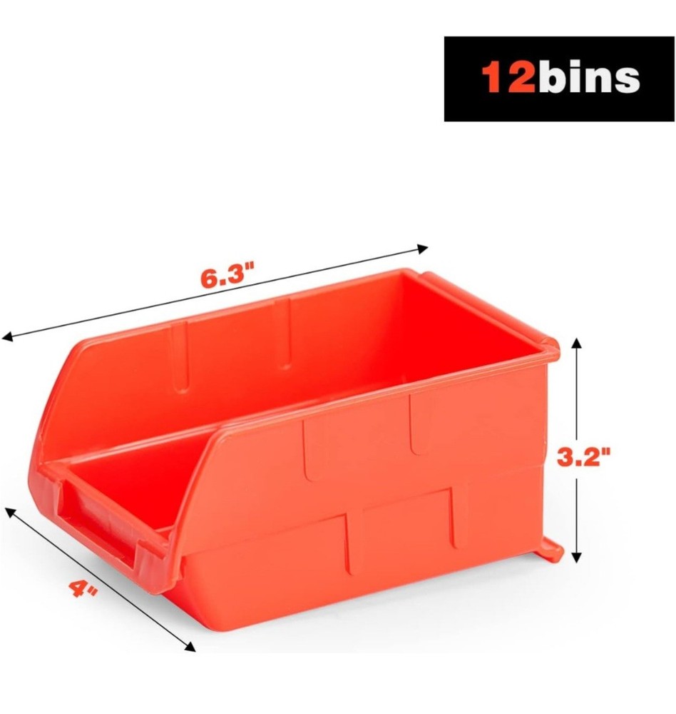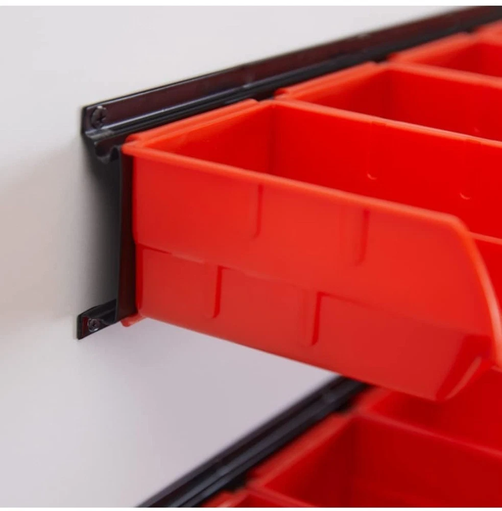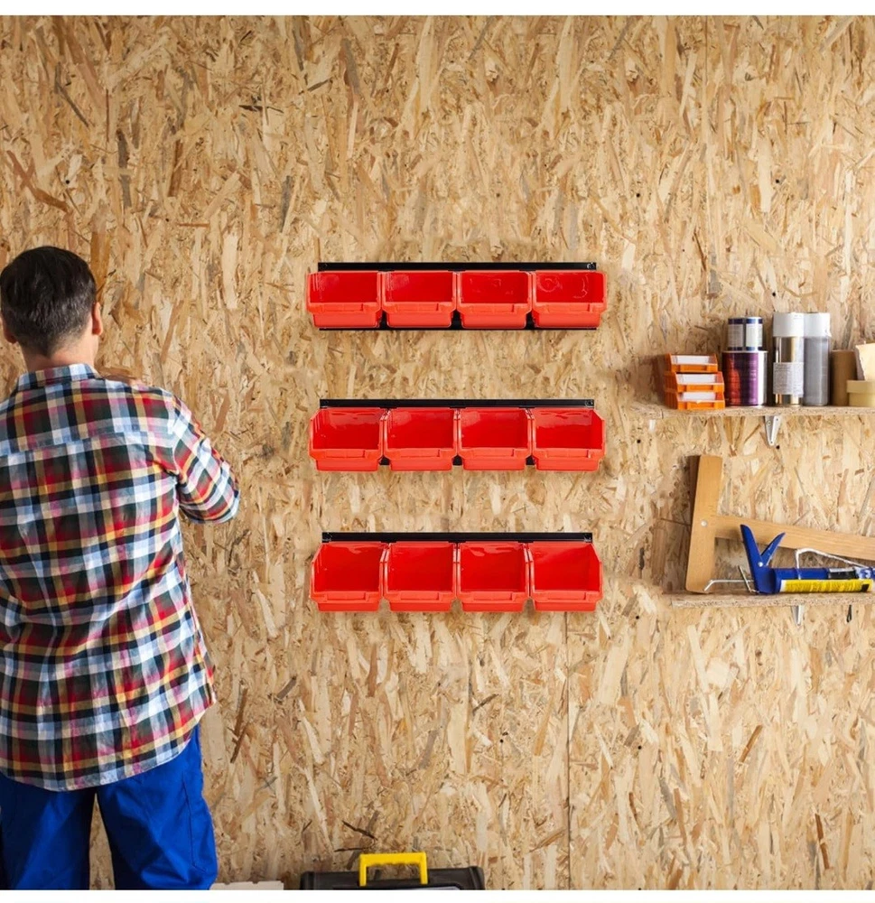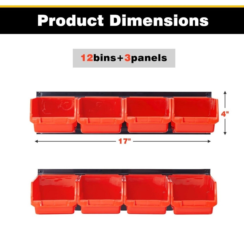 Ultrawall Wall Mounted Storage Bins, Plastic Hanging Storage Organizer Bins, Garage Tool Storage System for Screws, Nuts, Bolts, Nails, and Small Hardware Parts, 12x bins & 3 x rails, Orange #11.11.25