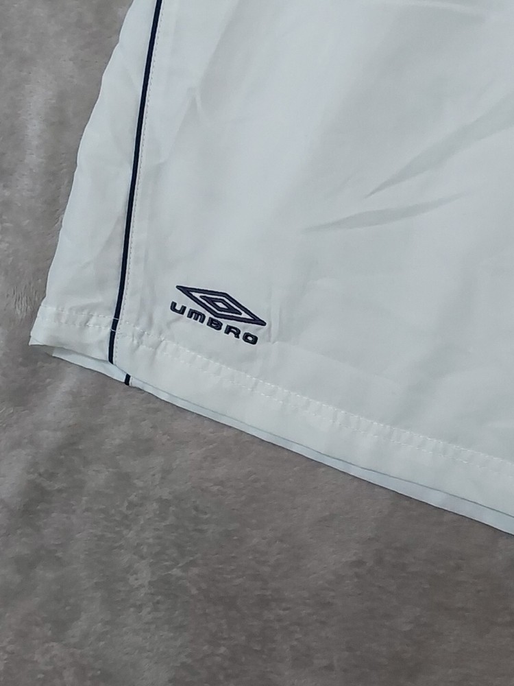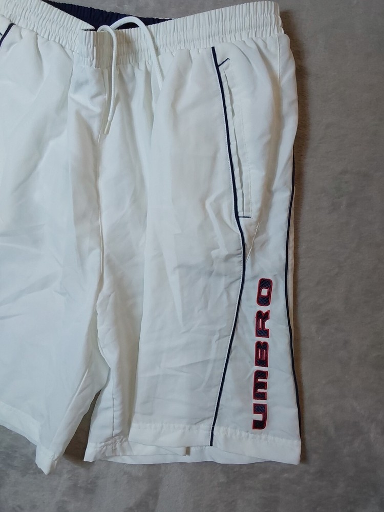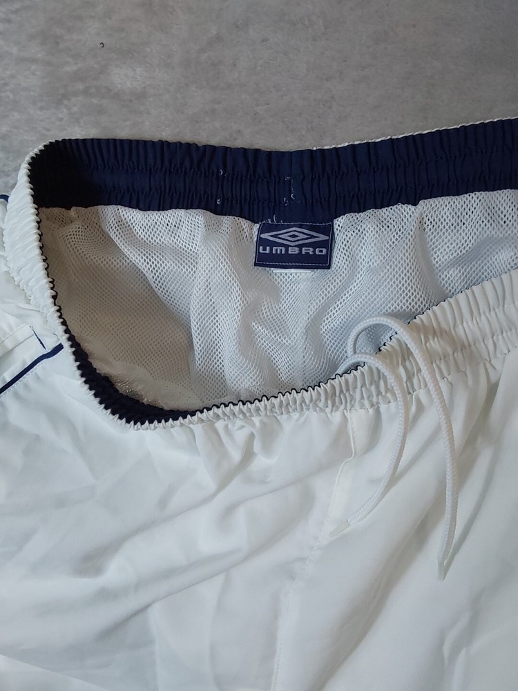 Experience the 90s vibes with these Umbro men's white swim shorts in size XL. The shorts feature a solid pattern, drawstring closure, and breathable fabric that makes them perfect for training, water polo, surfing, and other recreational activities. With their vintage design and quick-drying feature, these swim shorts are a must-have for any fashion-forward man. 383 CL Machine washable and made from high-quality materials, these swim shorts are a great addition to your summer wardrobe. Whether you're hitting the beach or just enjoying a day out, these shorts will keep you comfortable and stylish. Get your hands on these Umbro swim shorts today and relive the 90s in style!