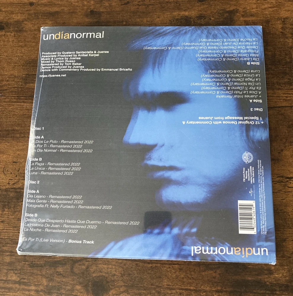 Celebrate the 20th anniversary of Juanes' "Undianormal" album with this limited edition triple LP vinyl release. The record features a full range of sound quality and includes remastered, colored vinyl for an enhanced listening experience. The album is presented in a cardboard sleeve and is still sealed, making it a perfect addition to any music collection. Enjoy the unique blend of Latin pop, blues rock, hard rock, and ballad that Juanes is known for, with vocals and instrumentals that will transport you to the 2000s. This album is versatile and can be enjoyed for any occasion, whether it's a carnival, wedding, Christmas, new year, or birthday. Don't miss out on this anniversary edition of "Undianormal" and add it to your collection today! Item sold as pictured.