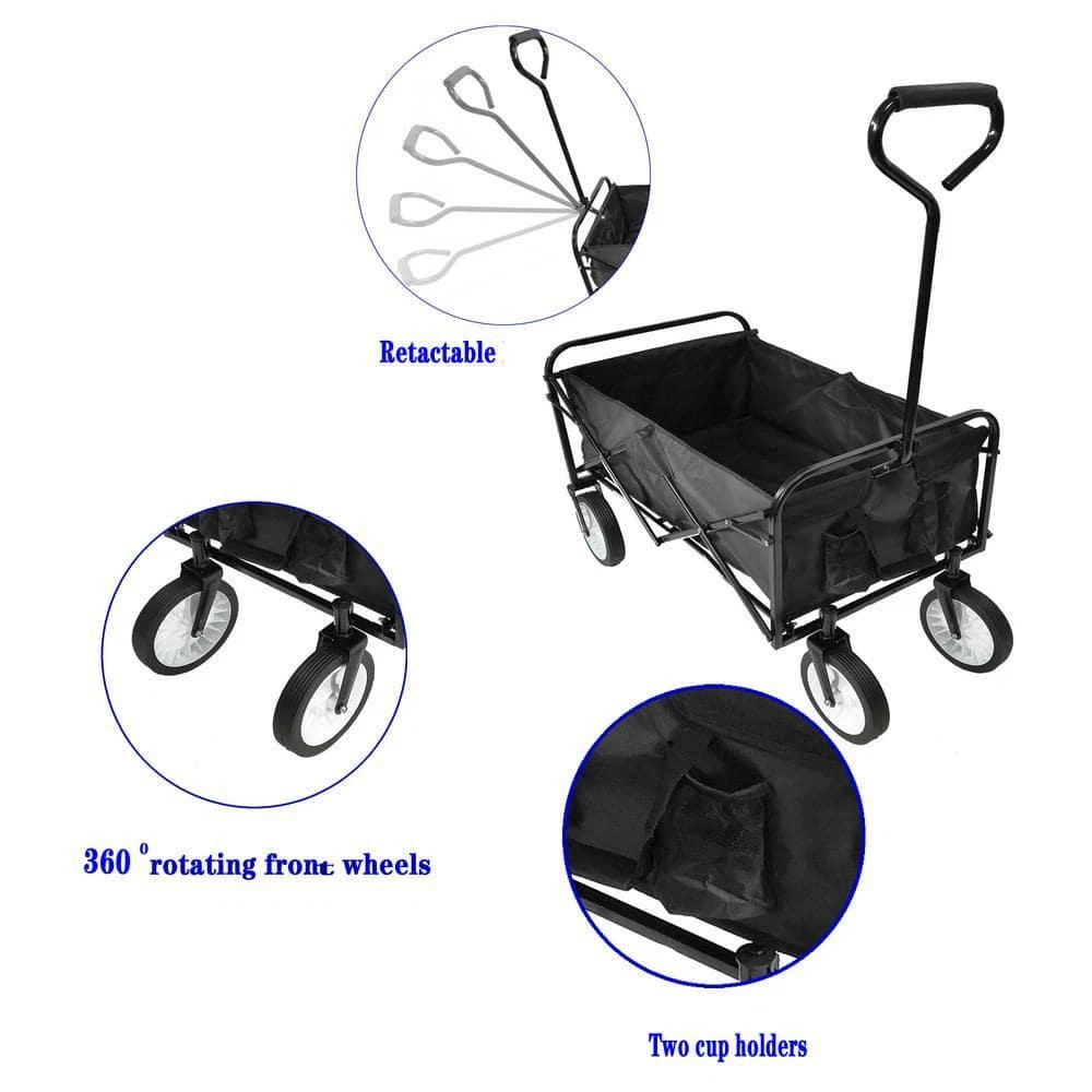 Contact Us Add to Favorite Contact Us Fast Shipping Hassle Free Return eBay Money Back Guarantee Authenticity Guarantee Features Bin Material: Steel Capacity (cu. ft.) - Total: 3.24 cu ft Color: Black Features: Handle Grips Handle Material: Steel Number of Wheels: 4 Product Weight (lb.): 22 lb Returnable: 30-Day Tire Type: Flat-Free Tires Weight Capacity (lb.): 150 lb Wheel Material: Rubber Product Depth (in.): 23.23 in Product Height (in.): 46.45 in Product Width (in.): 39.37 in Wheel Size (in.): 8 Item Description Haul your gear to the beach, garden, park, camping or shopping when you have the foldable garden utility wagon. The wagon folds down to just 8 in. D It also comes with 4 rubber all-terrain wheels, perfect for use on rocky or uneven surfaces. It's quick and easy to set up and when you're done, it folds easily into its carrying case to save space. Please note that it is not intended for transporting children. Lighten your load with this versatile stroller for your everyday needs. About us Customer service is our top priority! Please be sure to read the description thoroughly to make sure that this is the item you want before making a purchasing decision. If you have any questions about this item, please contact us via eBay messages before placing your order. We make every effort possible to accurately describe and depict the items. Please be aware that slight variations in color may be due to differences in lighting and computer monitor resolutions. All items are in stock at the time of listing; however, in the unlikely and unforeseen event that we are unable to fulfill your order through any of our networked warehouses, we will notify you as quickly as possible and offer you a 100% refund on your purchase. Thank you for shopping with us. We appreciate your business! Payment PayPal is our preferred method of payment. If you do not have a PayPal account, all major credit cards are gladly accepted through PayPal as the payment processor. PayPal offers great buyer and seller protection. Your order will be processed pending receipt of cleared payment through PayPal. Sales tax may be charged depending on your location. Shipping We provide fast, free shipping. Most items are shipped within 3-5 business days of receiving cleared payment. We ship to the lower 48 contiguous United States only. We do not ship to P.O. Boxes or APOs. For select items, we ship internationally through eBay?s Global Shipping Program. We do ship most of our smaller items internationally using eBays Global Shipping Program. If ordering electrical items outside of the U.S., please note that they will come equipped with a standard U.S. voltage plugs. You will need a suitable adapter to use the item in your country. Certain restrictions apply. Standard or Economy Shipping is ALWAYS FREE! You will be notified via eBay messages as soon as your items ship. Special Notice for Freight Items: If an item ships via Freight (Truck) Delivery, a valid phone number will be required so that we can contact you to schedule delivery. The item may be delivered with curbside delivery. An adult signature will be required. Please be sure to have available help on hand to assist you with moving the item to the desired location in or outside of your home. Freight items must be inspected upon delivery. In the unlikely event that damaged is observed, you MUST refuse delivery and note the damage on the shipping receipt and send it back via the Freight carrier. Returns will not be accepted on Freight items after they have been delivered, inspected, and the driver has left the premises. Returns We offer a 30 day return/exchange policy for most of our products. You can request a refund if you are dissatisfied for any reason with your product. (Restocking Fee May Apply). Only factory defects are accepted as a reason for a return. In the case of factory defects, if available, we will replace the product for you. When returning an item, it must be in all of the original packaging and include all of the original accessories or items that came with it. The item and package should be in original and perfect condition. You will be required to cover shipping on the return of non-defective items. All returns MUST be done within 30 days of date of purchase. Please note that we cannot give refunds or replacements after the 30 day limit has expired. When sending in a return, please note that it can take up to 7 business days for the return to be processed. We do our best to process as quickly as possible. We are extremely fair, and in the rare event of something out of the ordinary happening with our products or shipping, we will gladly work with you to find a fair resolution. Disclaimer Were sorry, but we do not honor product exchange requests. If you need to exchange an item received, you will need to go through the normal returns process identified in our returns section and then order the correct item, if it is still available. Orders are processed immediately and dispatched to fulfillment as soon as they are received. For this reason, we are typically unable to honor cancellation requests. If you need to cancel the transaction, please contact us as soon as possible and we will attempt to cancel the order. If the order has gone too far through the fulfillment process, we will be unable to cancel. In that event, you would need to wait until you receive the item and go through the normal returns process as mentioned in the returns section of our policies. Payment Options Shop With Confidence Copyright ©2023, All rights reserved. Listed by Sku Fetch