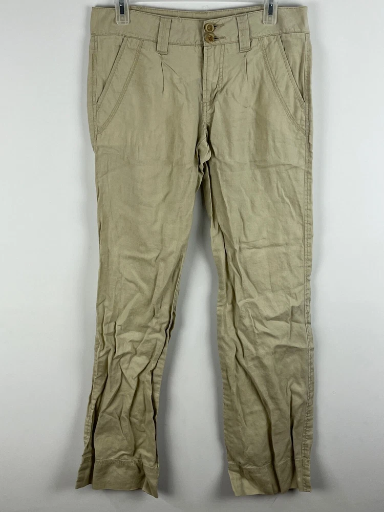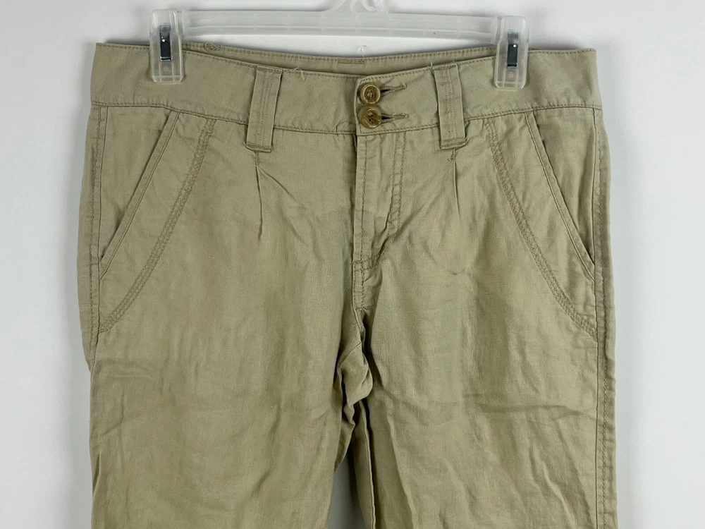 Season: Fall, Spring, Summer Leg Style: Bootcut Pattern: Solid Waist Size: 31 in Garment Care: Machine Washable Brand: Unbranded Rise: Low (6.5-8.5 in) Size Type: Regular Occasion: Business, Casual, Party/Cocktail, Travel, Workwear Type: Pants Material: Linen Style: Khakis Department: Women Inseam: 32 in Front Type: Pleated Features: Comfort, Lightweight, Pockets Size: 31 Vintage: No Closure: Button, Zip Fit: Regular Seller Notes: “good condition” Color: Beige Personalize: No Country/Region of Manufacture: Unknown Handmade: No