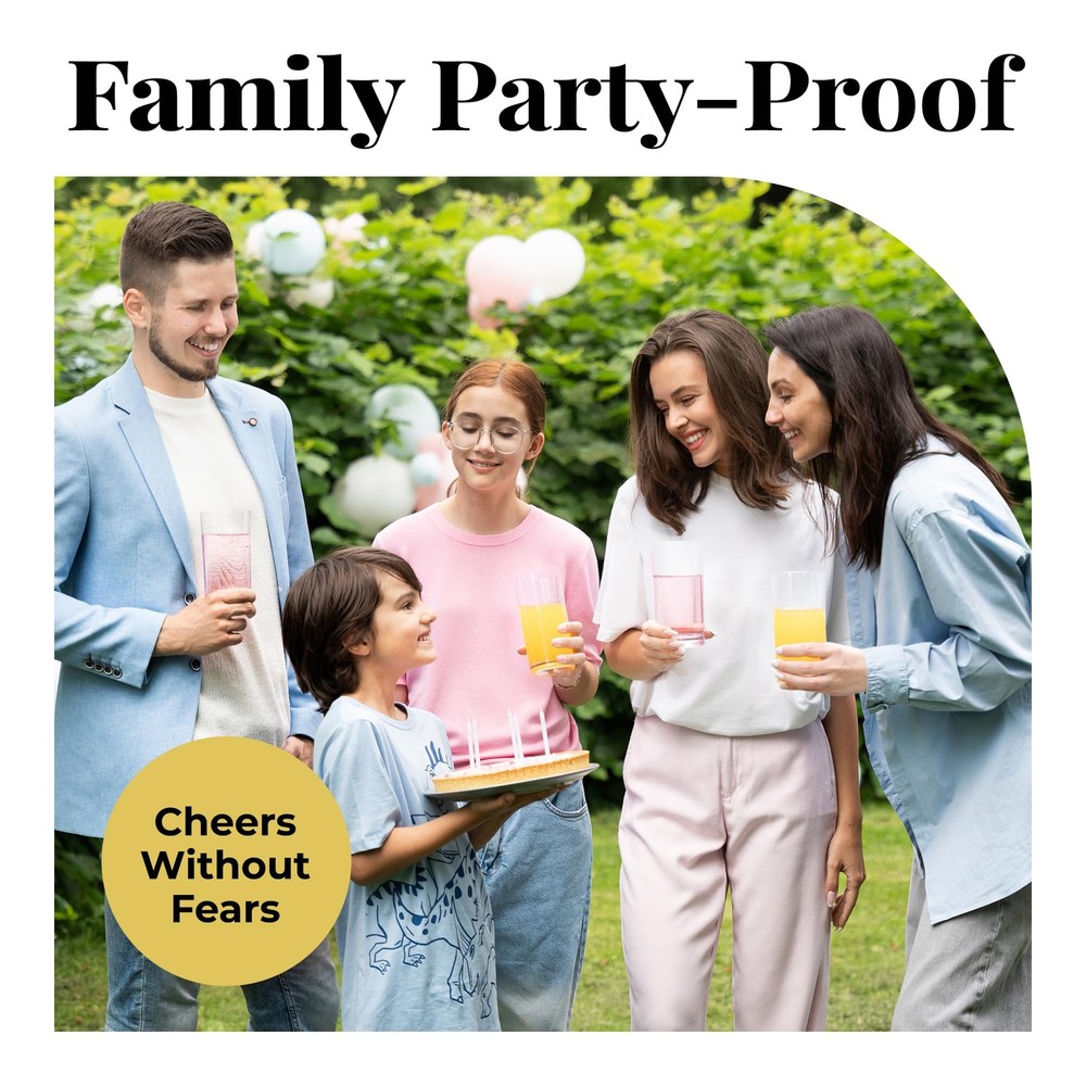The Most Stylish Drinking Glasses Set For The Whole Family Our glasses are simply ideal for you to enjoy all your favorite drinks, with safety, style and anywhere you wish. US PATENTED Eastman Tritan Material Our drinkware is made out of superior Eastman Tritan plastic material. This odorless copolyester is 100% made with materials from USA, 100% BPA Free, EA and AA-Free and is also mighty durable. It sports the clarity and feel of glass while it packs unmatched durability. Plus, it will keep you and your family safe as it won’t contaminate your drinks with harmful chemicals like other plain plastic glasses do. The Durable Glassware Set For All Occasions The sleek, novelty design will match all your kitchen utensil’s style and can be an elegant addition to any restaurant’s, bistro’s, bar’s or coffee ’s kitchen supplies. The Perfect Gift Our unbreakable glasses can be the ideal gift for any occasion! They’re ideal for travel, picnics, campings, and they’re bound to outlast any plastic or plain glass drinkware! 100% Satisfaction We take great pride in trying to deliver the best product and overall customer experience. ✔Superior Tritan Indestructible Build: This unique set of drinking glasses is made out of superior Tritan copolyester that makes each glass impact and shatter resistant. This premium material feels and looks like glass but it's far more durable than any other plain glass or plastic drinkware set out there. Feel free to get as clumsy as you want with our glasses, and enjoy your favorite beverages at home, patio or any pool, boating, camping, picnic, hiking or outdoors excursion that you wish! ✔One Glass - Unlimited Drinks: Our glassware is designed for heavy duty, daily use so that you can enjoy all your favorite beverages. Enjoy anything from sparkling water, milk, iced tea, lemonade, mojito, cider, soda, beer to simply refreshing water with our premium glass set. Plus, their sleek, attractive design will make for killer presentations on any party or entertaining occasion! Our unbreakable tumblers are also a great choice for serving smoothies and milkshakes. ✔100% Dishwasher-Safe: There’s a reason why all of our customers would buy our glasses again in a heartbeat; our supreme quality. The premium Tritan material is BPA-free, BPS, EA and AA-free, contains absolutely ZERO toxic chemicals and is bound to withstand hundreds of washing cycles and falls. Each glass is clear, odorless, and undergoes rigorous 3rd party tests so that maximum quality and safety is guaranteed for you and your family. ✔The Perfect Housewarming Gift: If you’re looking for a highly useful, thoughtful and elegant gift for new homeowners, newlyweds or just any Birthday, Wedding, Christmas, New Year's eve etc. this unique set of glasses is bound to be an instant favorite! Choose our set 6 glasses and we promise you’ll be golden! - The Name You Can Trust: Here at , we strive to provide every customer with the best buying experience and product possible, because it's YOU who keep us going strong. If for any reason you’re not fully satisfied, simply return the glasses, and we’ll make things right. Click Add to Cart now and enjoy hassle-free glassware on !