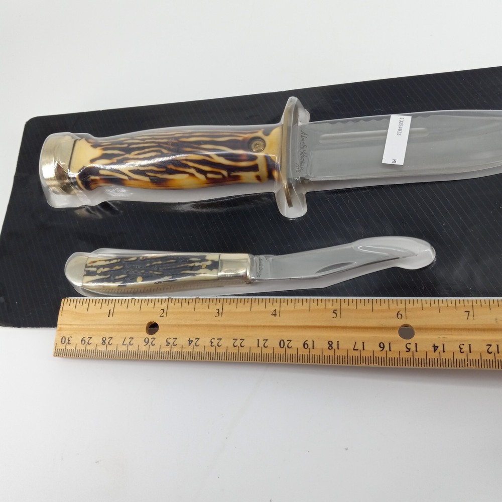 WE APPRECIATE OUR CUSTOMERS THANK YOU FOR SHOPPING WITH US!! Uncle Henry 2PC Knife Combo Bowie Dagger Fixed Blade w/ Sheath and Folding Knife This 2PC Knife Combo from Uncle Henry is a must-have for knife enthusiasts. The set includes a Bowie Dagger Fixed Blade with a drop point stainless steel blade featuring a plain edge and a folding knife with a staglon handle. The set comes complete with a sheath for safe storage and transport. The knives are factory manufactured and are in original condition. The blade length can be referred to in the pictures provided. The set is a collectible and a great addition to any knife collection. Don't miss out on this opportunity to own this high-quality knife set. *Please look at pictures as they are part of the description/details. *New *Thanks for looking! Please remember items listed as vintage or used will typically show age appropriate wear. I have provided lots of photos for you to see the general condition of each item. If you would like any further photos or information, please contact me and I will be happy to try and help. I do my best to describe items accurately. Pictures are considered part of the description. Cameras and/or computers can sometimes slightly alter colors. Any measurements should be considered approximate. If you need an exact measurement, please ask. Terms and Conditions : Once a purchase has been made, it is legally binding contract. Payments: Payment is due when purchase is made, Thank you for your prompt payment. *If payment is not received within 4 days of purchase, then a Non-Paying Buyer Dispute will be filed, and eBay may mark it against your account. SHIPPING: We ship daily (Mon-Fri not to include holidays) and will ship within two business day of receiving payment! I do accept returns if you are unhappy with your item for any reason. I ask that it be returned in the original condition you received it in. Please let me know right away if there is a shipping breakage. I will ask for photos of the box and item(s) to better prevent further breakages. Upon Receiving : If you are satisfied with your product(s), please leave some positive feedback. *We love hearing that you have received your purchase(s), and are content, delighted, and untroubled. *Once you receive your purchase(s), please inspect them for any damage during transit. Report any damage within 24hrs via eBay e-mail. Return Policy : You may return unworn, unwashed merchandise in its original condition with all tags attached. If you bought a brand-new item, it MUST be returned brand new (Sealed and Any returns MUST be sent back to us complete and in the same condition as delivered to you Unopened). Items must be in new or original condition (free of odor, markings etc.) and ready for resale. Any serial or product numbers must match the purchased item for refund. PLEASE NOTE that shipping will not be refunded . Upon time of purchase, you are agreeing to this return policy. CHECKOUT: Please make sure that your address on file with eBay is complete and correct as we must use the address you have with eBay. *If you have any questions about your purchase, delivery, or a possible product return; Please contact us immediately and directly through your eBay accounts message center! *We are Eco-Friendly, leaving the lightest possible impact on our environment! Whenever possible we will reuse packing material to aid with our Eco goals. Customer service and feedback: If you have any questions about your purchase, delivery, or a possible product return; Please contact us immediately and directly through your eBay account message center! Your satisfaction is our top priority! Our goal is to earn your 5-star 100% feedback. Thank You for buying from us!