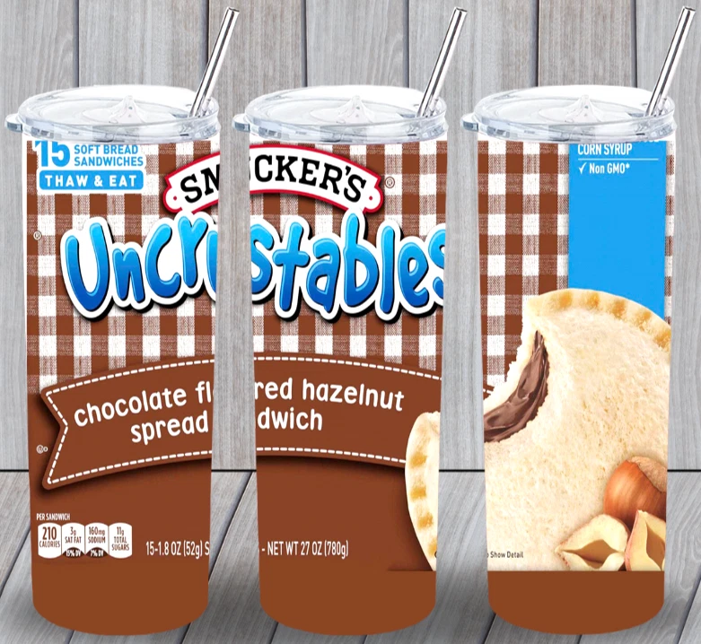 Uncrustables Hazelnut Multicolor 20oz Insulated Tumbler Lid Plastic Straw New