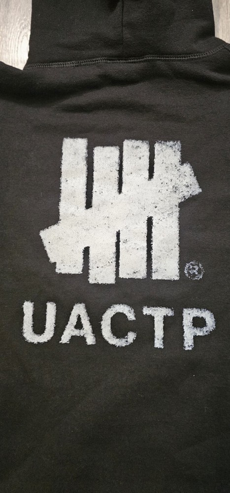 The Undefeated UACTP Pullover Hoodie in black features a graphic print back logo, making it a stylish addition to any man's wardrobe. Made from a fleece fabric blend, this hoodie is perfect for all seasons and offers a comfortable fit with its long sleeves and pullover style. It also includes convenient features like a hood, pockets, and a graphic print front, reflecting themes of hype, horror, and hipster style. The hoodie is machine washable and suitable for various activities like gym training, running, and hiking. Made by Undefeated, this hoodie combines quality and style for a classic look.