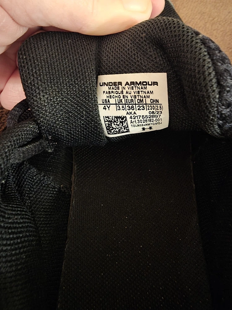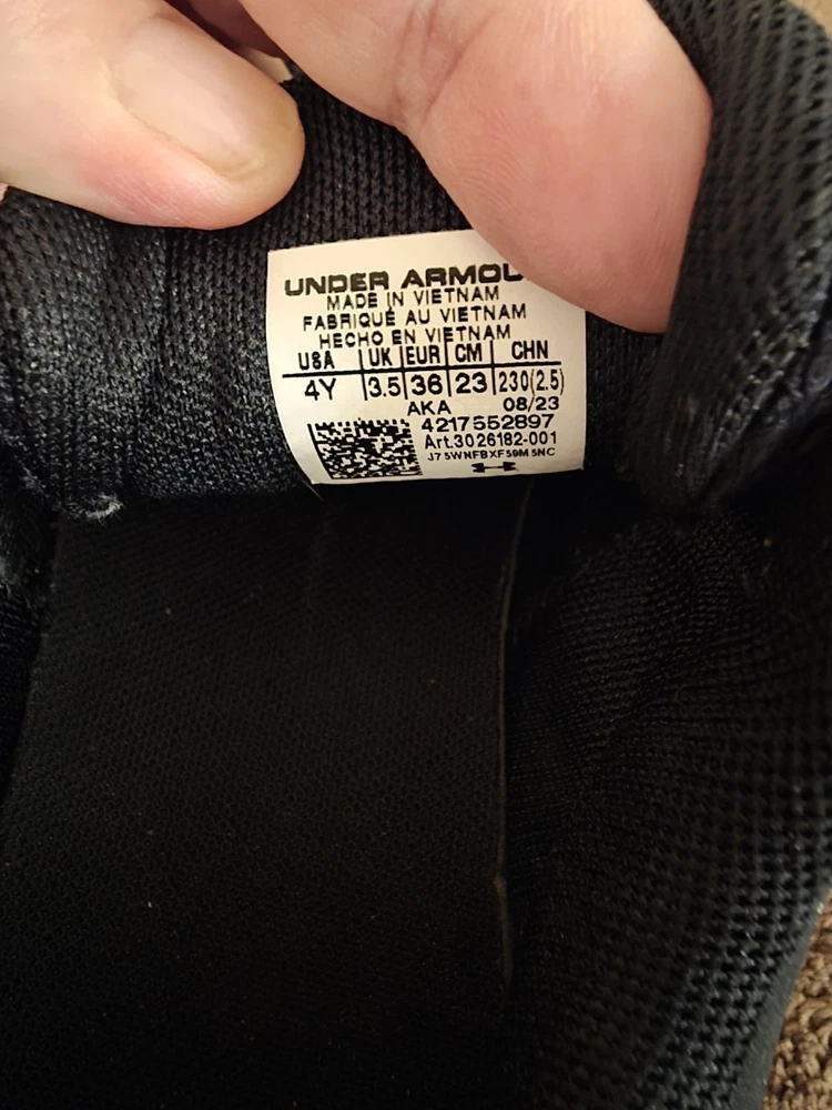 Brand: Under Armour Country of Origin: Vietnam Shoe Shaft Style: Low Top Color: Black US Shoe Size: 4 Type: Athletic Upper Material: Nylon Outsole Material: Rubber Department: Boys Shoe Width: Standard Closure: Lace Up Style: Sneaker