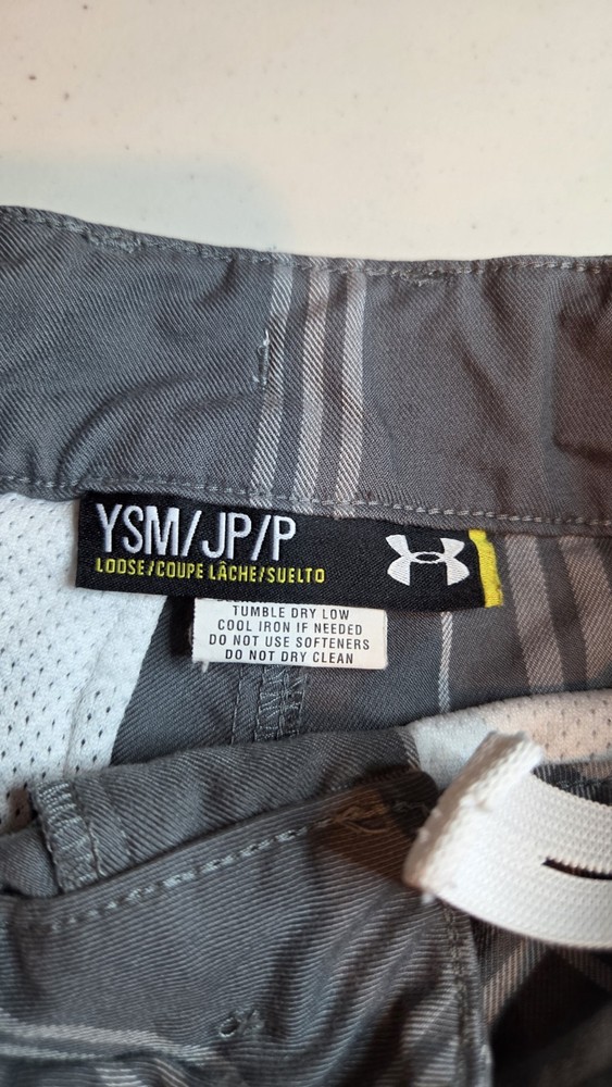 Under Armour Boys YSM Gray Plaid Golf Shorts Performance Activewear Adj Waist. Condition is Pre-owned - Excellent. Shipped with USPS Ground Advantage.