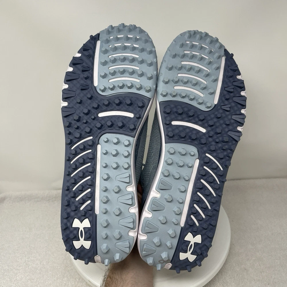 Elevate your golf game with the Under Armour Charged Steph Curry Spikeless Golf Shoes. These sneakers are designed for comfort and performance, making them perfect for both casual and activewear occasions. The lace-up closure ensures a secure fit, while the rubber outsole provides traction on the course. The cushioned and breathable features make them ideal for all seasons, whether it's winter, summer, fall, or spring. These golf shoes are customized with the Under Armour Charged Curry product line, and come in a stylish blue color with a solid pattern. The synthetic upper material and foam insole material provide durability and comfort, while the low-top shoe shaft style and medium shoe width offer a perfect fit for most feet. Whether you're a beginner or a seasoned pro, these golf shoes are perfect for any outdoor sports activity. NEW