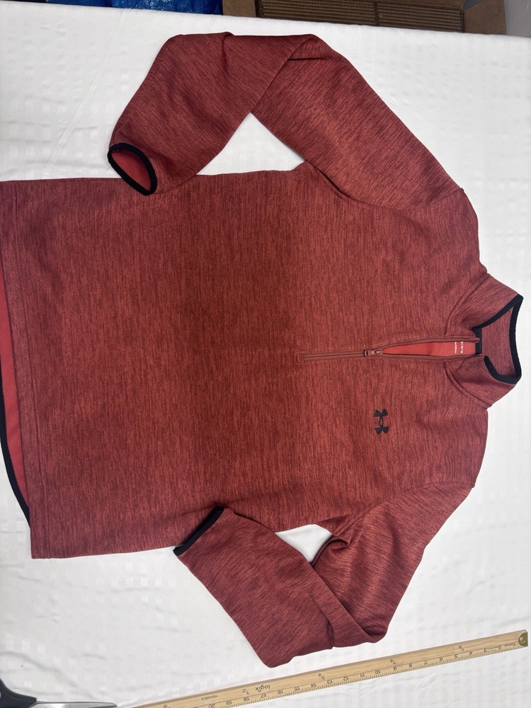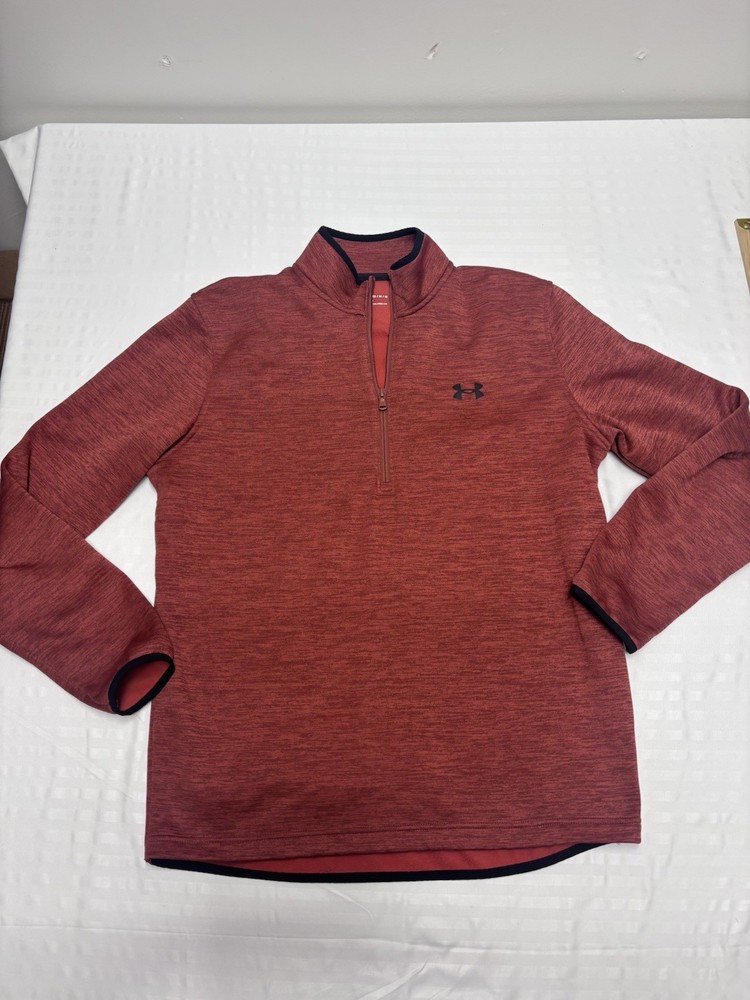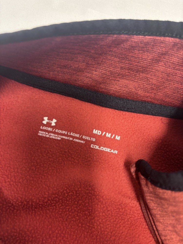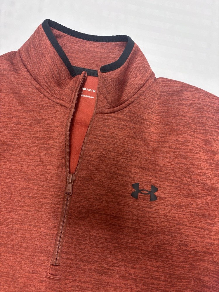 Under Armour Coldgear Mens 1/4 Zip Sweatshirt Pullover Orange Medium Loose EUC. Pre owned shipped with usps ground advantage.