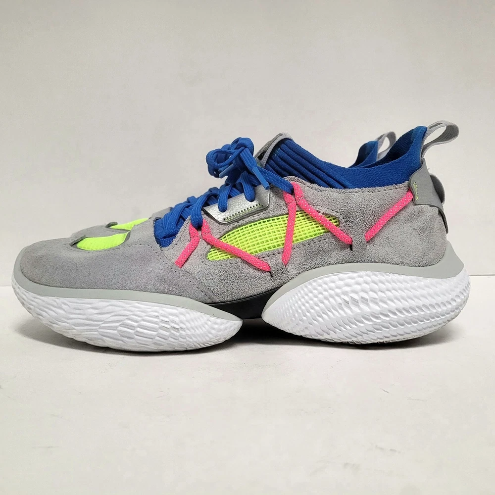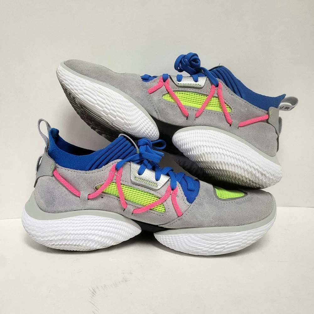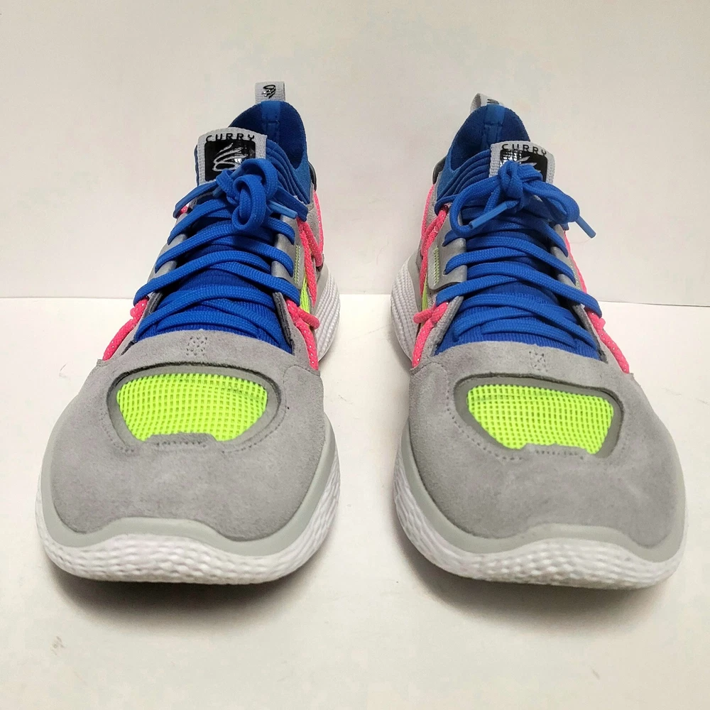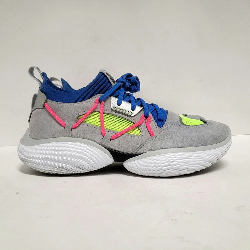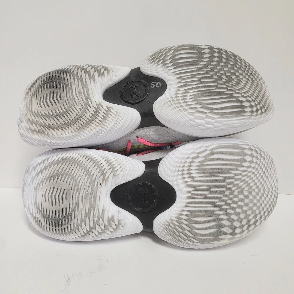 Elevate your activewear game with these Under Armour Curry Flow Cozy basketball shoes. Featuring a lace-up closure, these sneakers are perfect for casual wear, workwear, and athletic activities such as walking, cross-training, and basketball. The multicolor geometric pattern and Steph Curry character design add a touch of style to these comfortable and breathable shoes. Crafted with synthetic upper material, foam insole material, and rubber outsole material, these shoes are built to last. The Under Armour Curry Flow model is a popular choice for athletes and fans alike, and this product line offers a standard shoe width and low-top shoe shaft style. Don't miss out on the chance to own these stylish and versatile sneakers. Condition: pre-owned good condition Size: Men's - 8 Women’s - 9.5