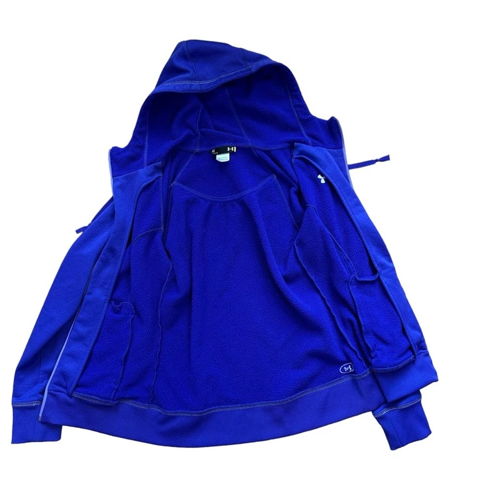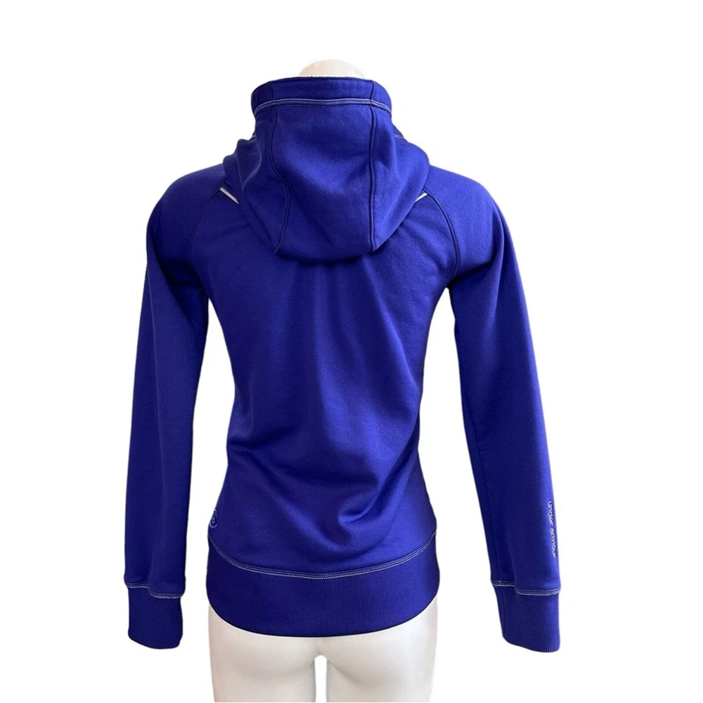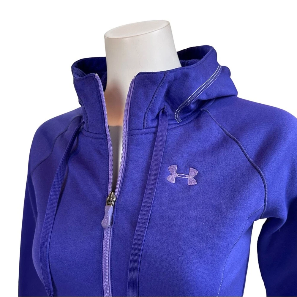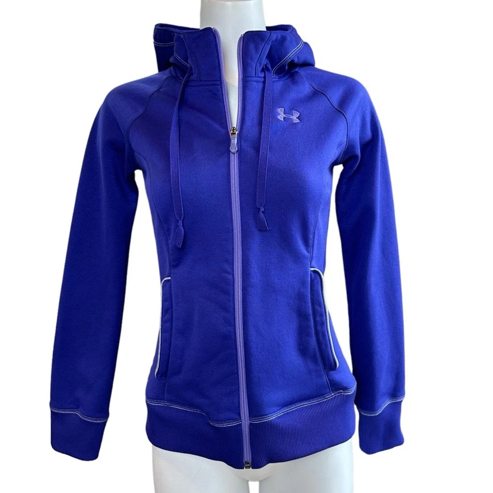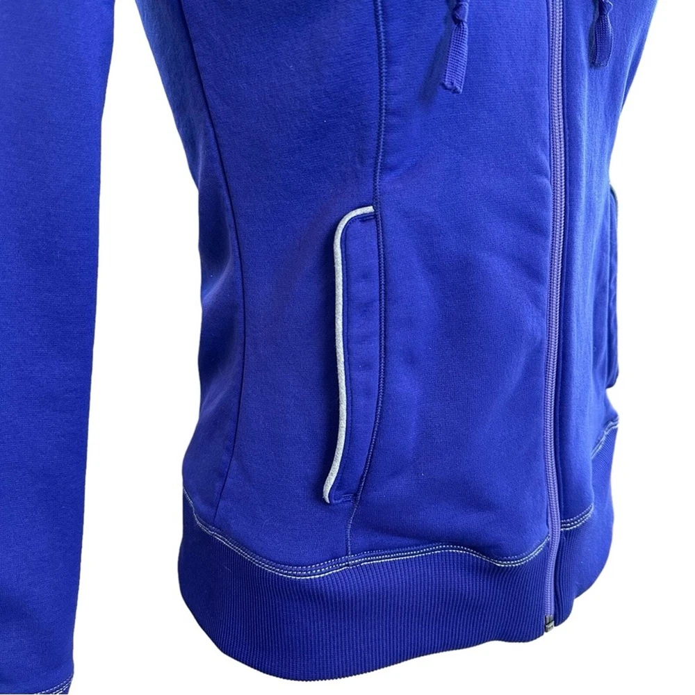 Beautiful purple color athletic jacket Zip front Drawstring hood Front pocket Approx measurements shown in photos No stains/holes