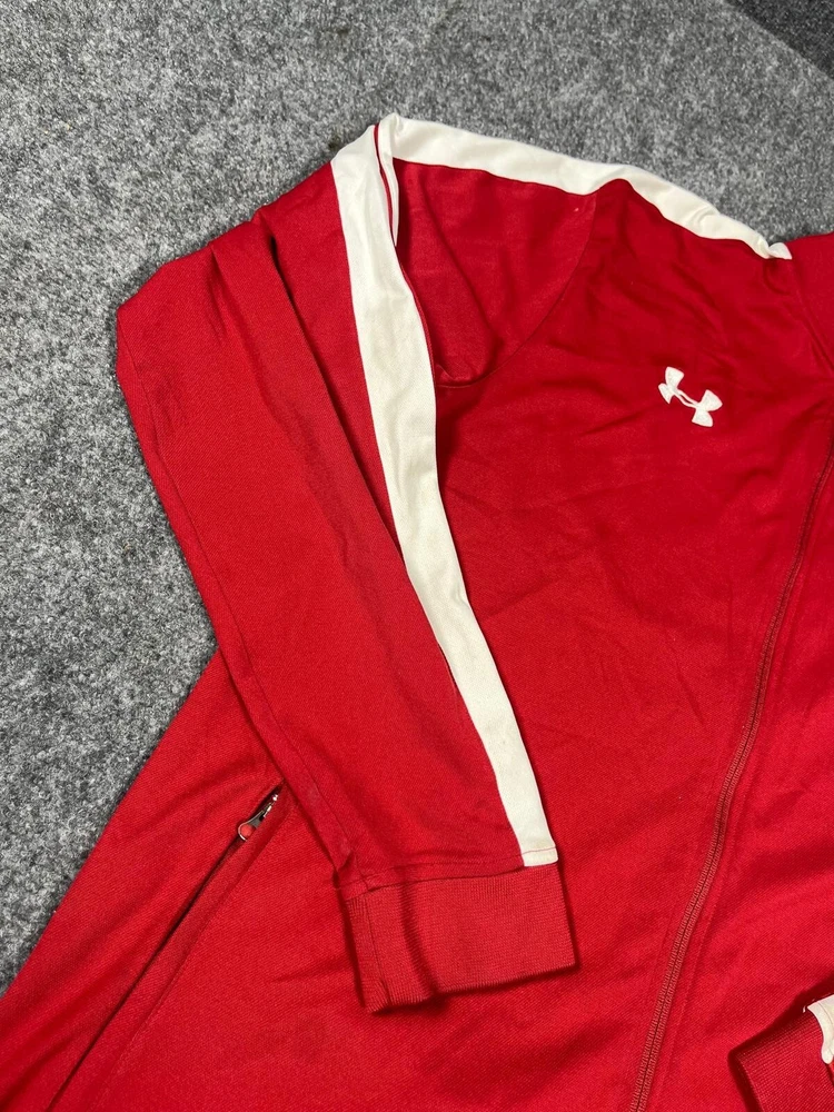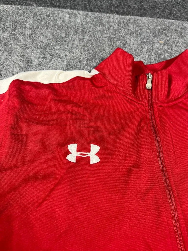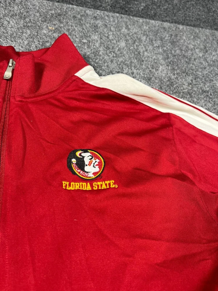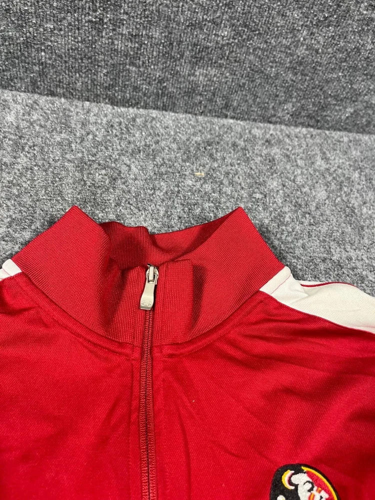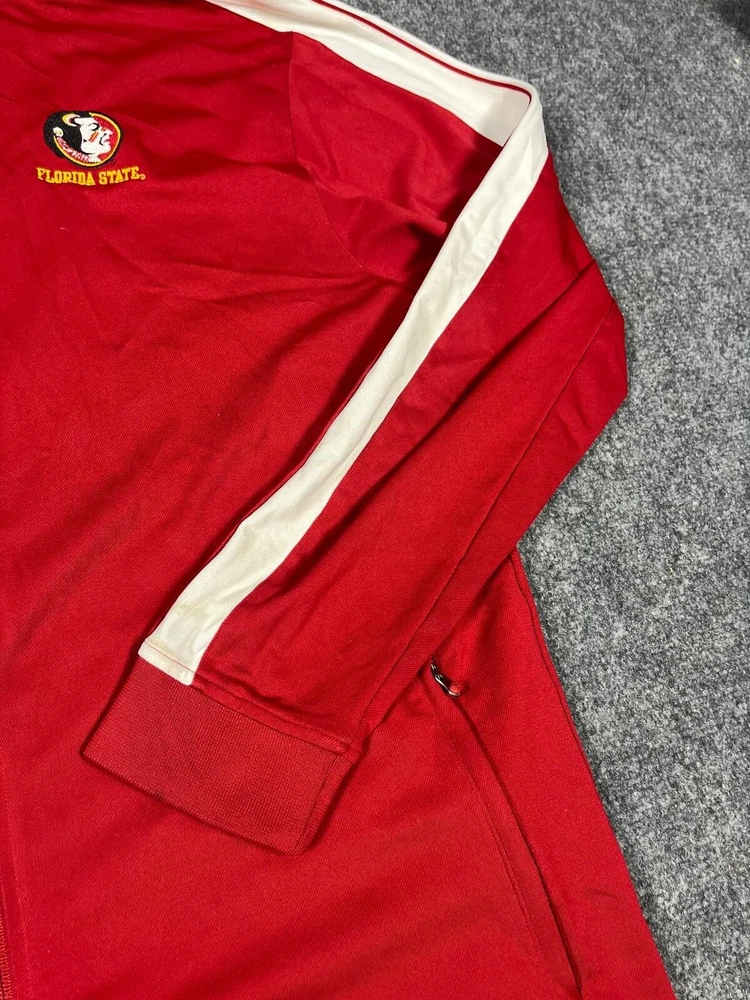 Show your support for the Florida State Seminoles with this Under Armour men's full-zip jacket. The red and white design is perfect for game day or everyday wear. Made with high-quality materials, this jacket is durable and comfortable. It's available in size L and features the team's logo on the front. Whether you're a fan of the sport or just looking for a stylish addition to your wardrobe, this jacket is a must-have.