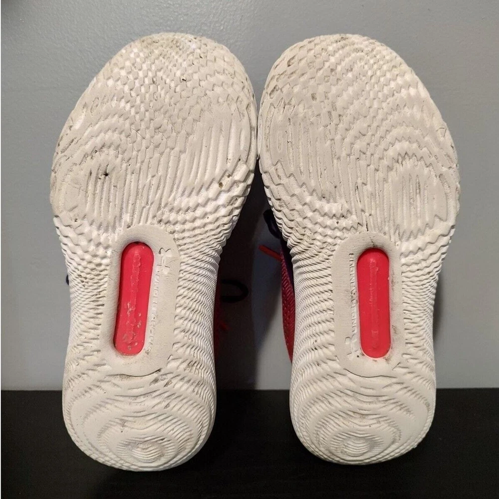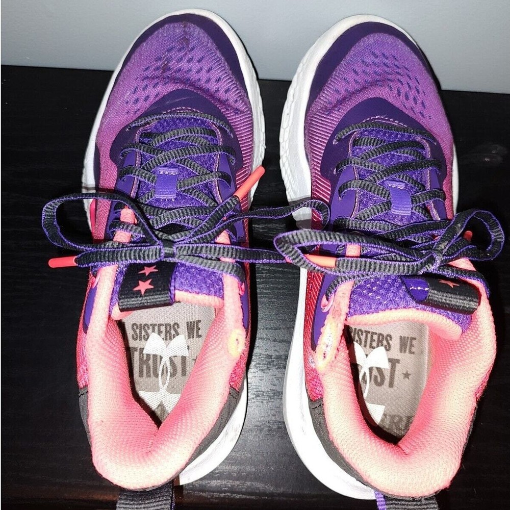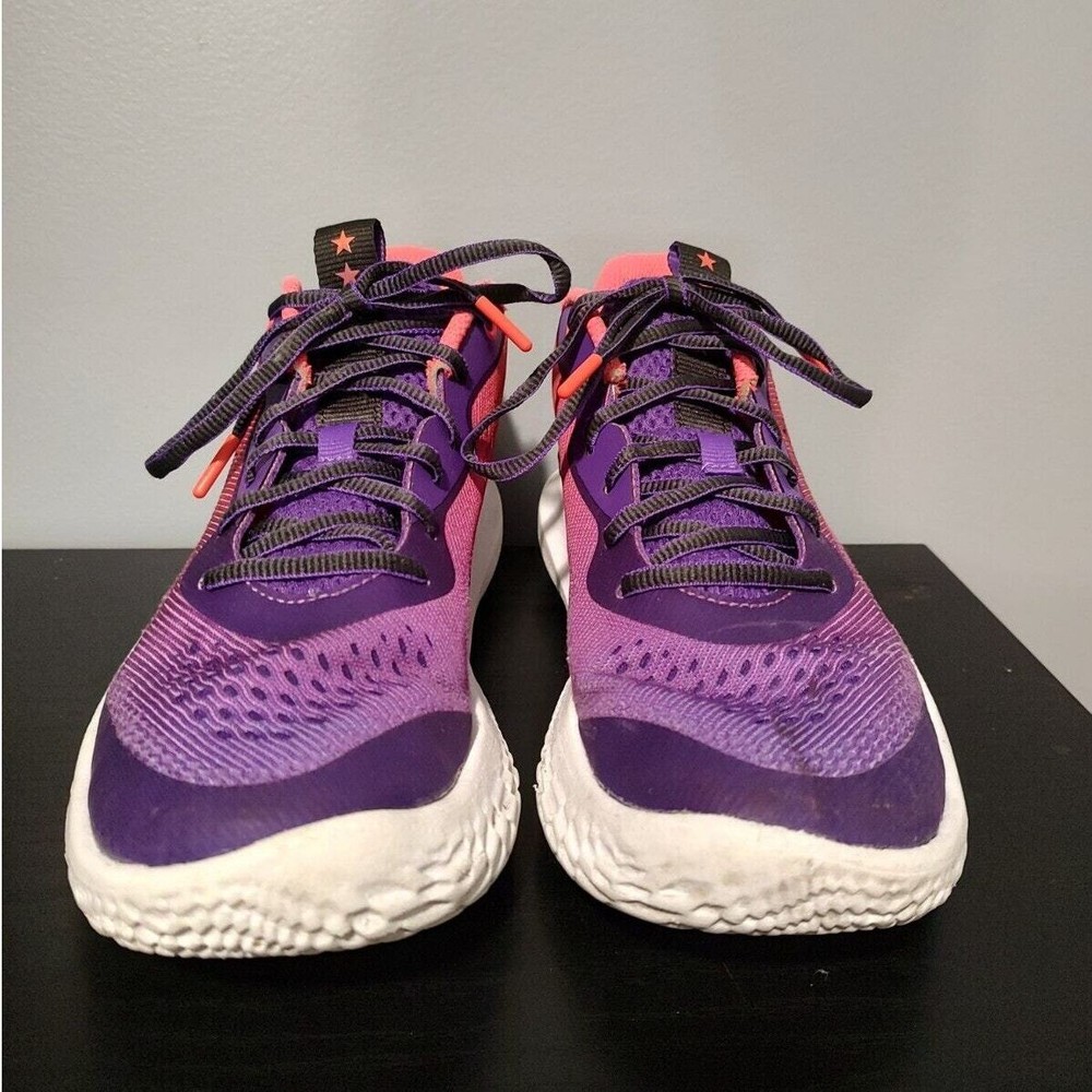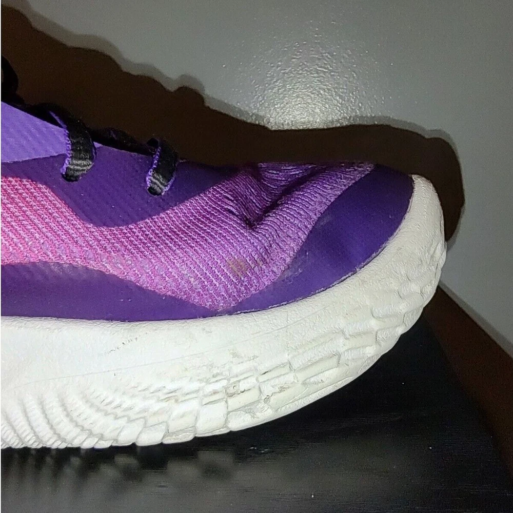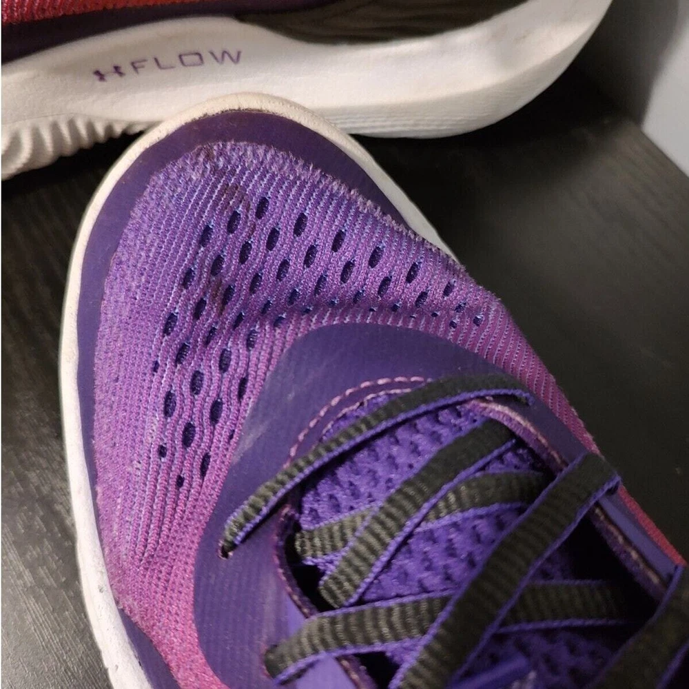 Under Armour Flow Breakthru 2 "International Womens Day" - Purple/pink under armour streetwear basketball shoes, women's size 10. They're the "international women's day" edition/colorway. They're a little stained and have wearing on the lips of the shoes (see pictures) great condition otherwise. Tread is worn They've been thoroughly cleaned before listing Please reference photos before purchasing