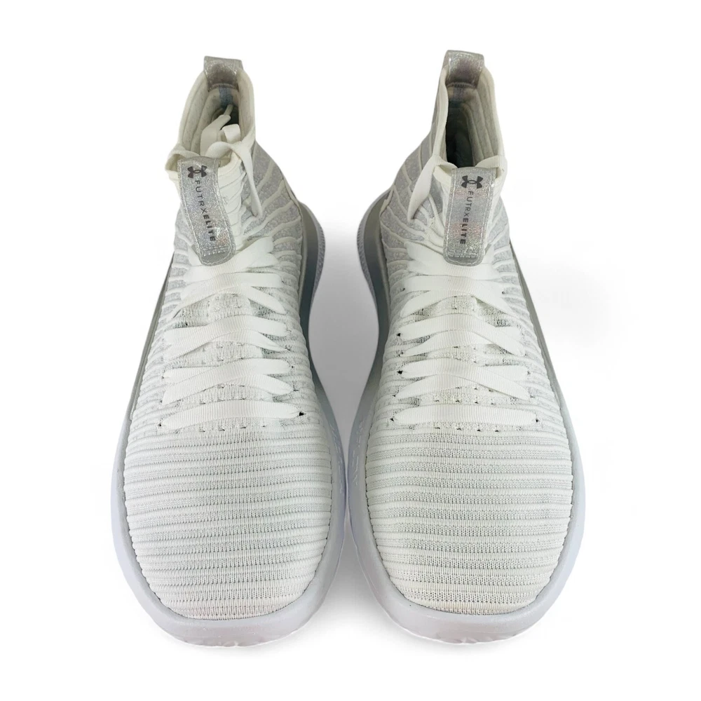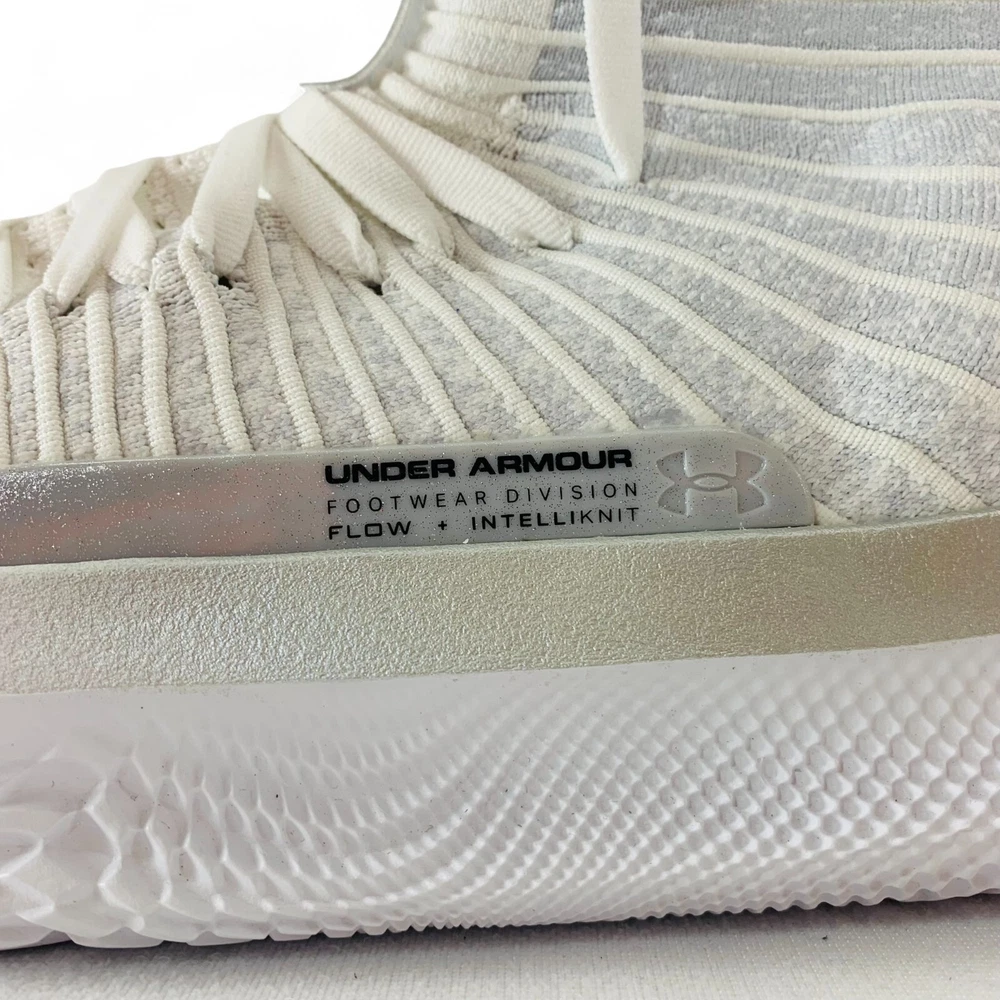 Under Armour Flow FUTR X ELITE VVS White Men's Basketball Shoes 3028021-100 Ya look good, ya feel good, ya play good. When you wear a pair of Under Armour Flow FUTR X Elite basketball shoes, you're sure to satisfy all 3. These basketball sneakers feature a bootie design for superior fit, comfort and security. They also feature a rubber outsole comprised of UA Flow cushioning technology that is super light, bouncy and provides optimal grip. Plus, these shoes' UA IntelliKnit upper is breathable and comfortable, exactly what you need you help you last all 4 quarters. Elevate your basketball game and buy your very own pair of these men's basketball shoes today! Product Condition These shoes are brand new and include their original shoe box, unless otherwise noted. The shoe box may have minor damage. This is a 100% authentic product, guaranteed or your money back. Sizing All size options provided in this listing are U.S. men's shoe sizes. Please reference the chart appearing in our product images to find your approximate size conversion (e.g. UK sizes, EU sizes, etc.). More Details Suggested Retail Price: $150 Brand: Under Armour Model: Flow FUTR X ELITE VVS White Distant Gray Style Code: 3028021-100 Gender (for sizing): Men Age: Adult Main Color: White Customized: No Closure: Lace-up Shoe Shaft Style: Mid-top Great For: Basketball, Running, Walking, Running Errands, Going Out, Daily Activities, Casual Wear, Going to Work