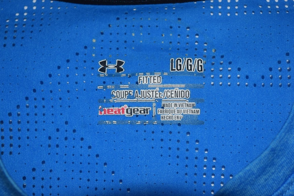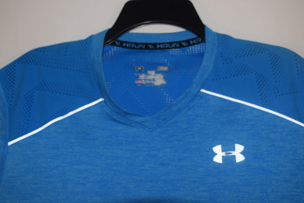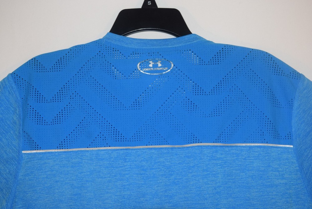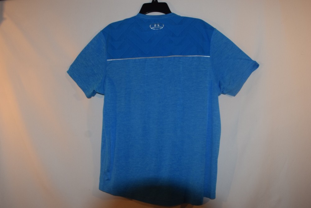 Crafted for the active man, this Under Armour HeatGear compression shirt in a vibrant blue hue is the epitome of both style and functionality. The short sleeves and classic crew neck design make it a versatile piece for a range of activities, from running and jogging to cross training. Its lightweight and breathable features ensure comfort during intense workouts, while the stretch fabric offers unrestricted movement.In a size large, this t-shirt is tailored to fit athletic bodies, adhering to a regular size type. The pullover closure allows for easy dressing, making it an ideal choice for any gym enthusiast. Its solid pattern complements the sleek design, making it a staple for any activewear collection.