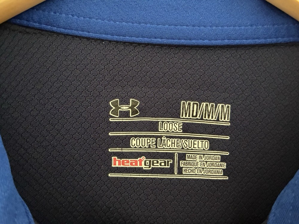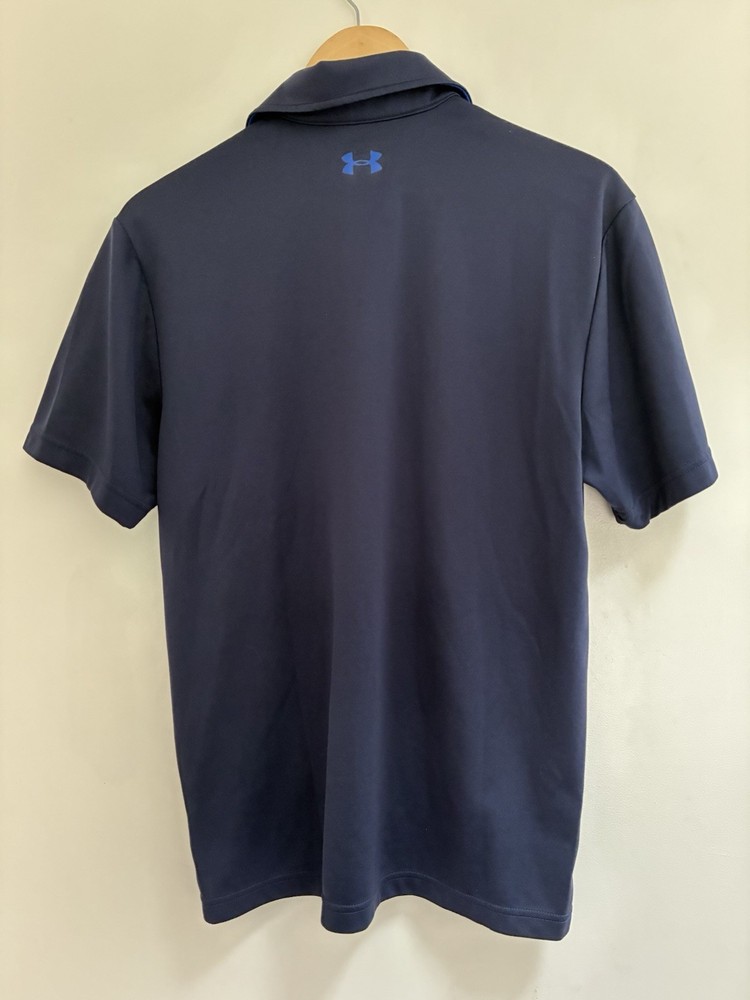 Under Armour HeatGear Men's Solid Navy Blue Loose Fit Polo Short Sleeve Shirt M. Condition is pre-owned. Smoke free, pet free home. Shipped via USPS Ground Advantage. In very good condition. There is a small snag in the fabric on the front. Free of rips or stains.