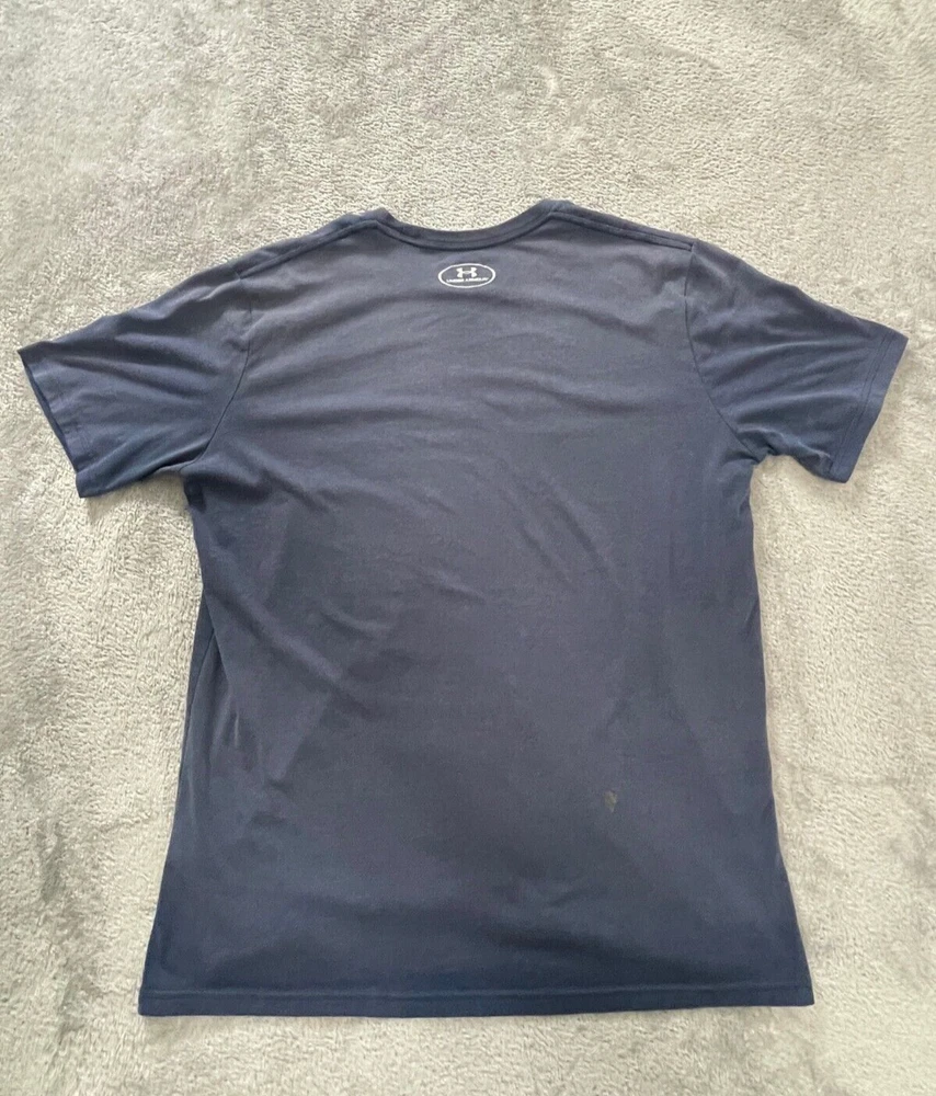 Thank you for your interest in this great looking Under Armour HeatGear Shirt! We do our best to provide the most accurate description so you know exactly what you’re buying. If there’s something we missed or you decide this piece just isn’t right for you, you’re welcome to return it within 30 days of delivery no questions asked. Every purchase supports small business and will be handled with care, all orders ship within one business day and often the same day! Size: Men's Large Fit: Regular Fit Material: 60% cotton 40% polyester Color: Blue Condition: Good pre-owned condition, staining shown in photos Armpit to armpit - 23" Top to bottom length - 27" *All clothing items have been properly cleaned per eBay standards