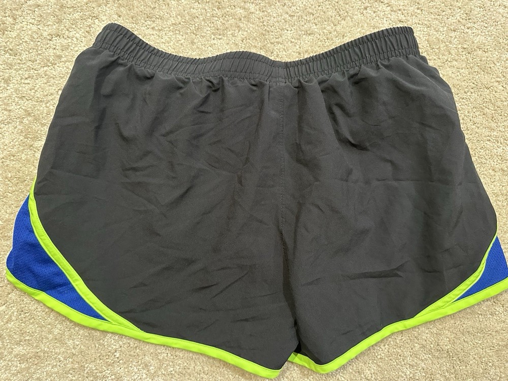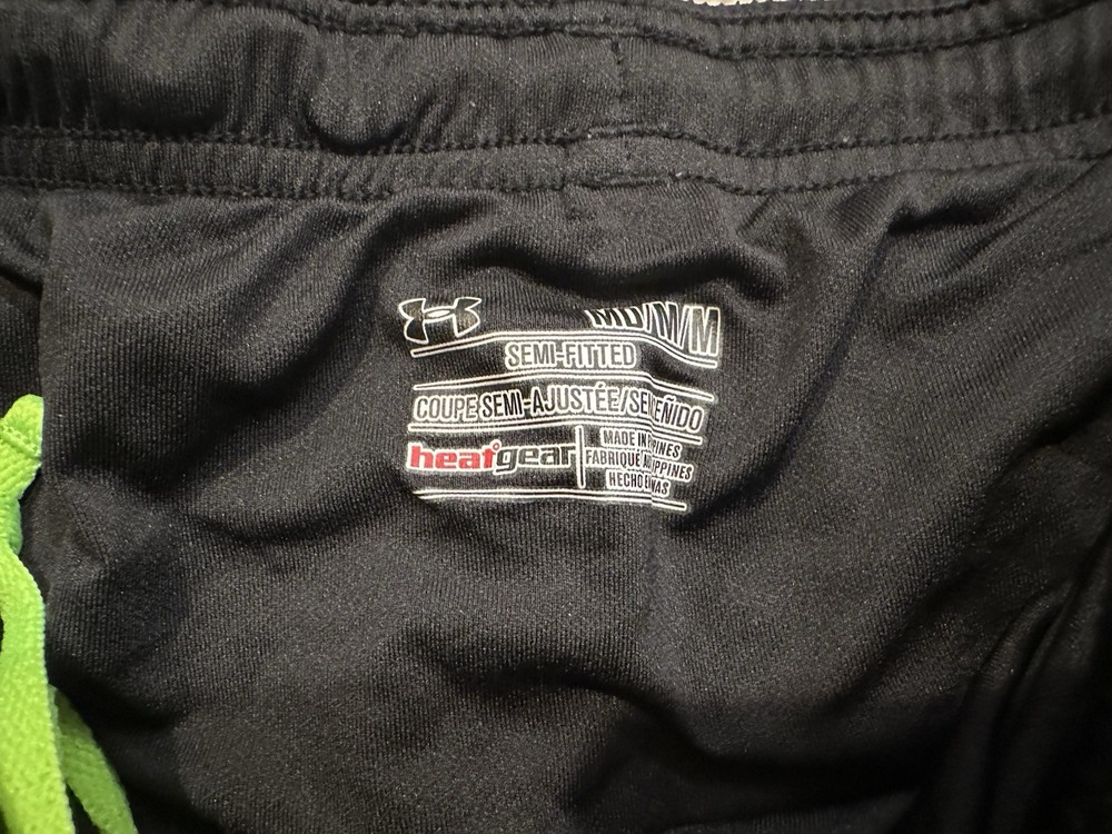 The product is a pair of Under Armour HeatGear women's athletic shorts in size medium. These shorts are designed for active occasions and come in a green and black color combination. Made by the reputable brand Under Armour, these shorts are perfect for women looking for comfortable and stylish activewear. The medium size ensures a good fit for a range of body types, making them a versatile addition to any wardrobe.