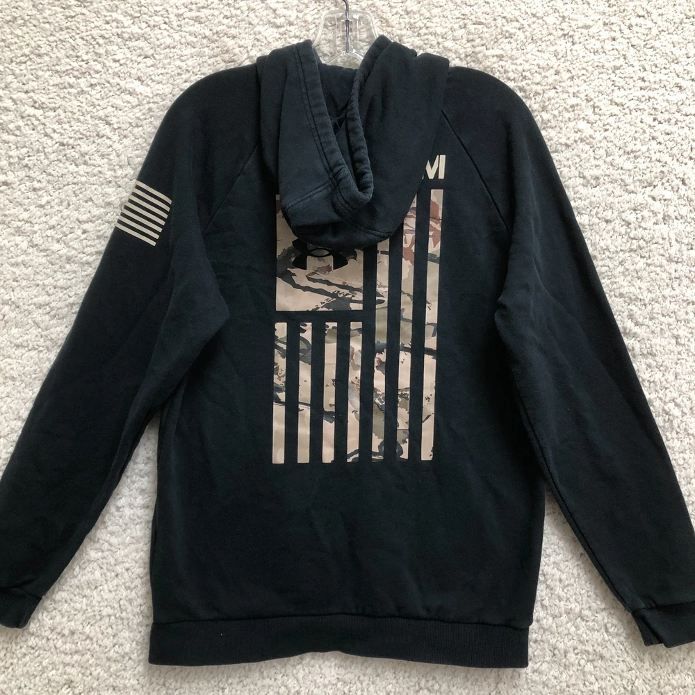 Under Armour Hoodie Medium Mens Black Loose Freedom Pullover Outdoor USA Flag WE SHIP ITEMS DAILY, SO EXPECT TO RECEIVE YOUR ITEMS FAST. YES, WE COMBINE SHIPPING !!! Measurements: Chest (pit to pit) / Length (collar to end) Measured flat in inches. Please, See Pictures for Measurements. PLEASE NOTE : Please look at the measurements before purchasing. If you are not sure about the size, flat lay a similar item of your own and measure that item to compare with our measurements. We do accept returns within 60 days . Please note, the item must be returned in the exact same condition as it was received. The Seller pays return shipping if the item does not fit. We request that you select "Item does not fit" when returning an item that does not fit. Thank You! Don't forget to check out Our Other listings. Thanks and have a great day.