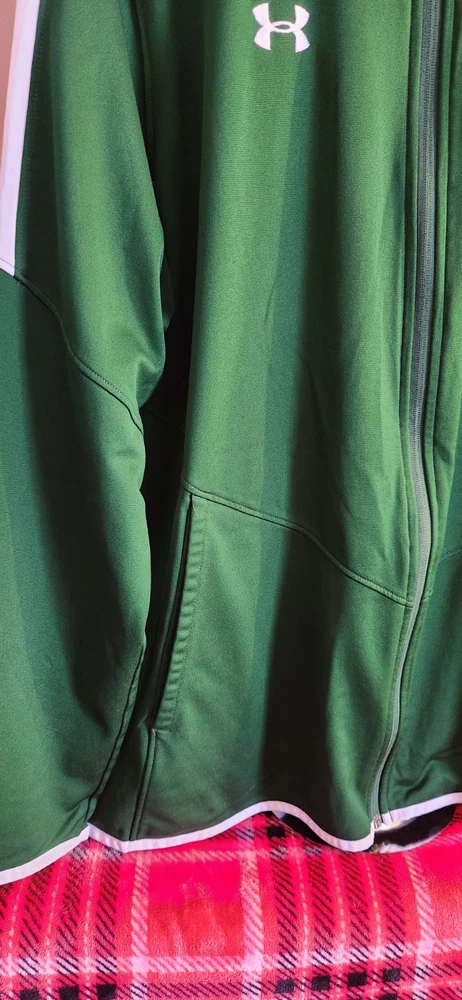 Elevate your athletic wardrobe with the Under Armour Light Jacket, a perfect blend of style and functionality. Crafted for individuals who value both comfort and appearance, this green jersey is designed to cater to the needs of men who prefer a regular fit. The softshell fabric offers a gentle touch while ensuring durability, making it suitable for a variety of activities including running, cycling, and soccer. Details such as the classic fitted sleeves, stand-up collar, and moderate compression level enhance the jacket's practical appeal. With features like breathable fabric, easy care, and lightweight design, it's an ideal choice for gym training, hiking, or even casual outings. The zip closure and a size that accommodates a 31-inch shirt length ensure a secure and comfortable experience for the active individual. 🟨🟨🟨 Keep in mind that if there are any flaws, it will be on the pictures.🟨🟨🟨 ❤️❤️❤️ Thank you for visiting my shop! I’m happy to answer any questions.