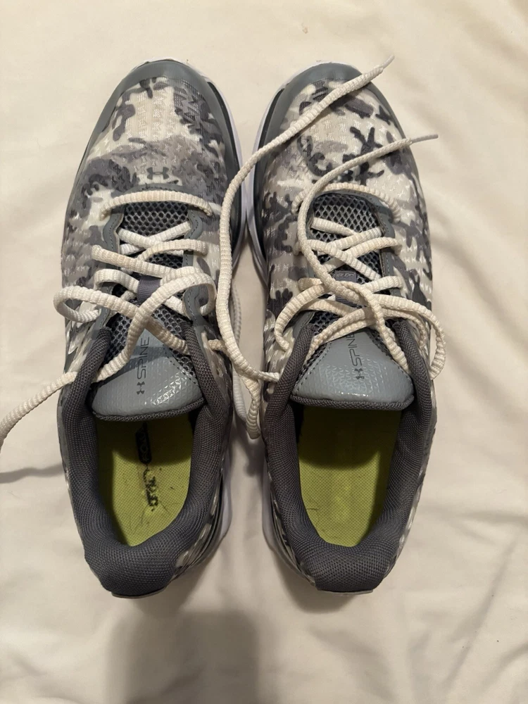 Experience the perfect blend of style and comfort with these Under Armour Men's Grey Spine Sneakers. Designed for the active individual, these sneakers feature a sleek camouflage pattern and the signature Under Armour craftsmanship, ensuring both fashion and functionality. The breathable textiles and rubber outsole provide comfort during any activity, while the standard shoe width and lace-up closure offer a secure fit. With a US Shoe Size of 8.5, these low-top sneakers are tailored for individuals who value versatility in their athletic wear. Ideal for a range of activities, the Under Armour Spine sneakers are a testament to contemporary style meeting athletic performance. Whether you're hitting the gym or exploring the outdoors, these shoes are built to keep up with your lifestyle.