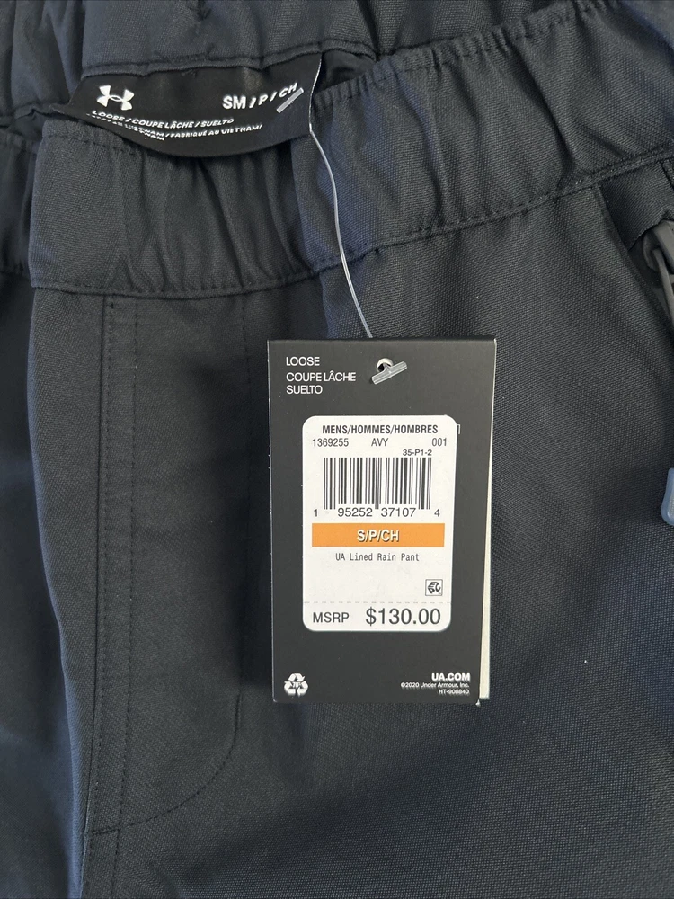 Experience the ultimate comfort and protection with these Under Armour Men's UA Stormproof Lined Rain Pants. These pants are perfect for any outdoor activity, whether it's walking, golf, fishing, hiking, or military. The pants come in a solid black color and are made of a blended fabric of polyester, with a 100% waterproof and windproof outer fabric. The pants feature a drawstring closure, straight leg style, and a loose fit. The waist compression area ensures a comfortable and secure fit, while the interior woven lining provides added warmth and comfort. The pants also come with numerous features such as easy care, UA Storm technology, waterproof and taped seams, zip pockets, and an encased elastic waistband with internal drawcord adjust. These pants are machine washable and have a size of S. Get ready for any adventure with these high-quality and durable Under Armour pants.