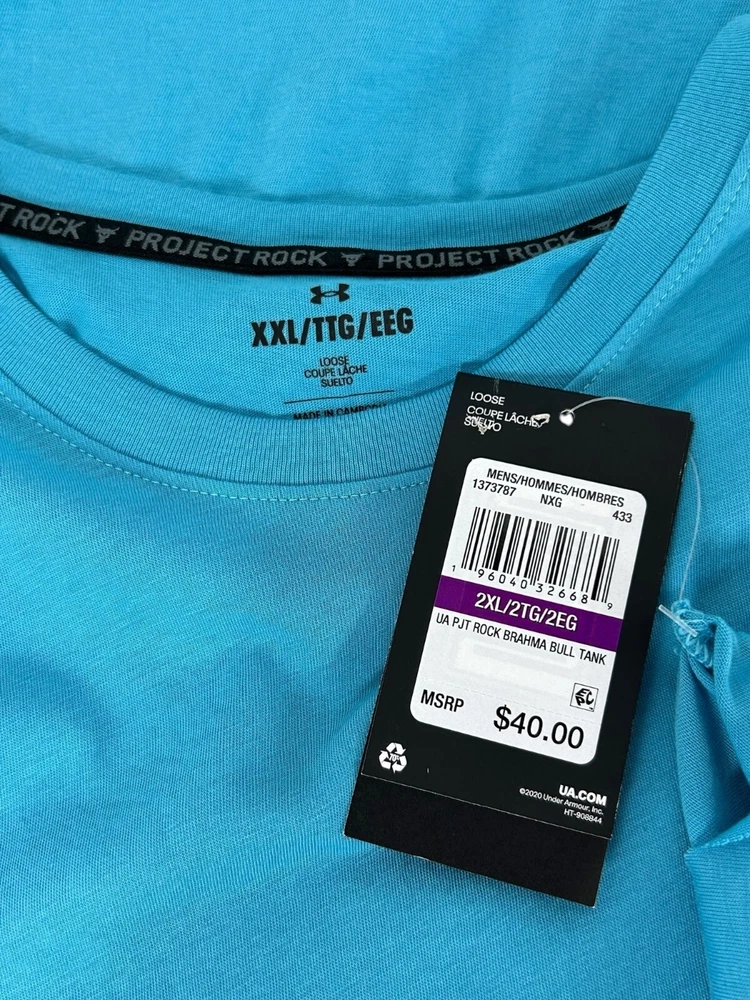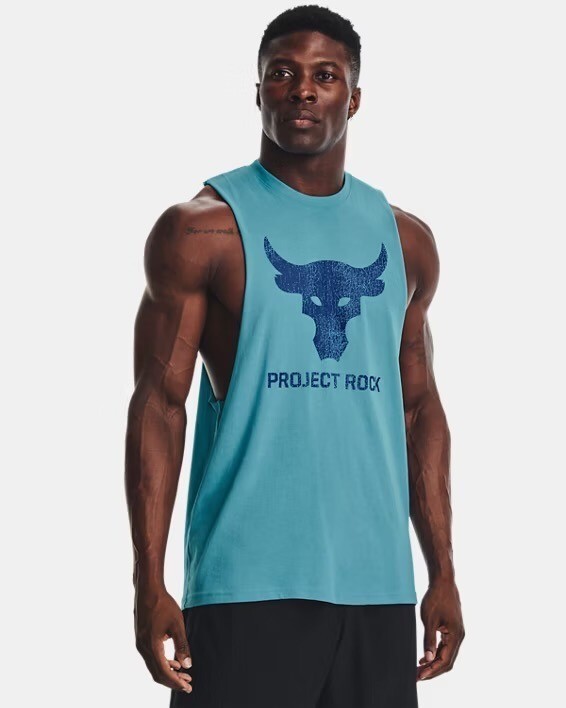 New with tags; hard to find tank! Under armor project rock Brahma bull tank top in two tone blue Mens XXL Bull logo on front with 'Project Rock' underneath Round crew neckline Sleeveless Moisture wicking and lightweight Great for the gym or any athletic/casual occasion Relaxed fit Made with polyester/Cotton Made in Cambodia #underarmour #underarmourprojectrock #tanktop #underarmourtanktop #projectrock #underarmourmens #underarmourshirt #underarmourtank #underarmourprojectrocktanktop