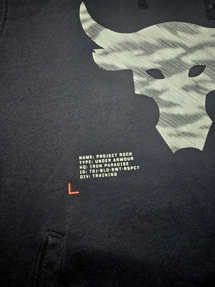 Under Armour Project Rock Charged Cotton Black Short Sleeve Hoodie Mens Size LG. Condition is Pre-owned. Shipped with USPS Ground Advantage.