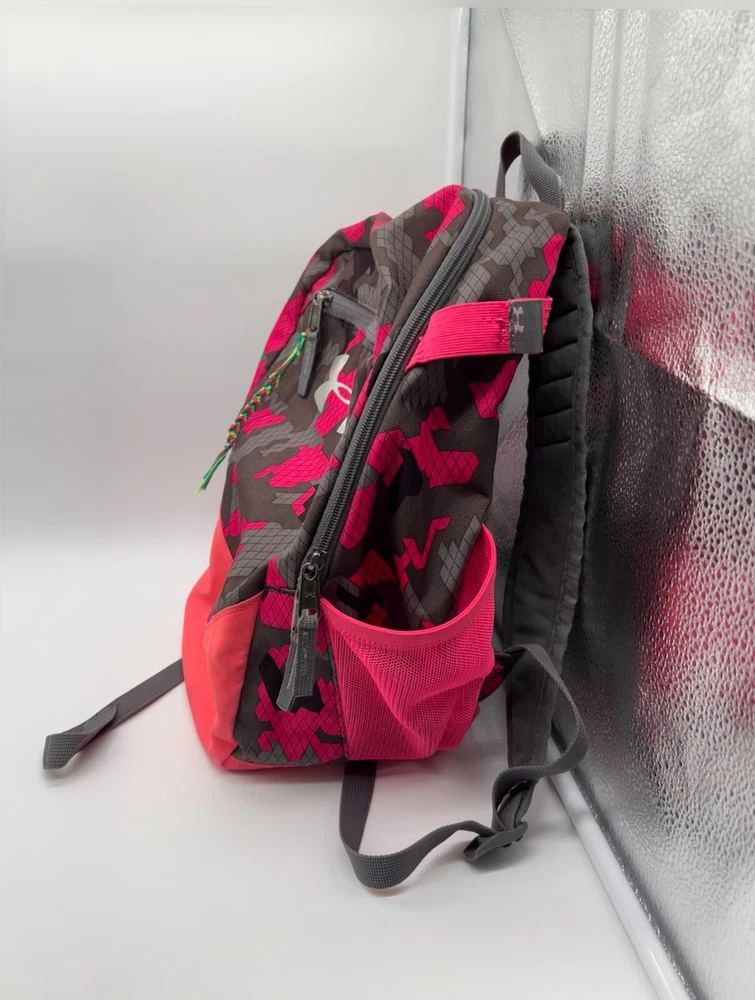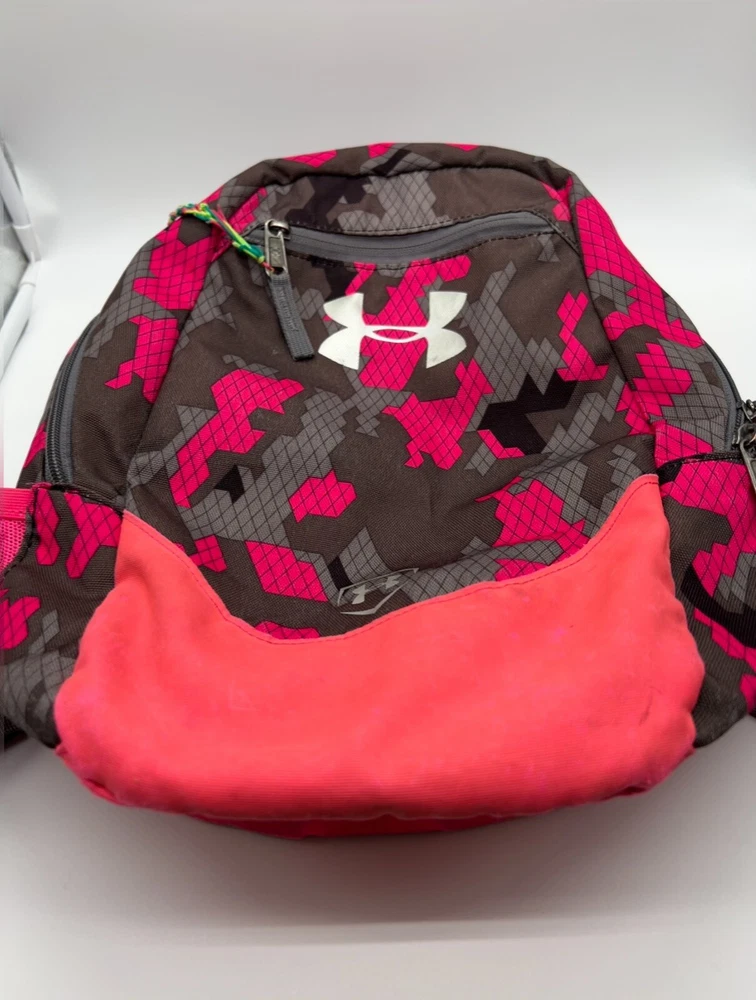 Under Armour School Backpack Pink/Gray Camo Used, Poor Condition. Dirty Spots same like pictures showed. Item: N28(6)