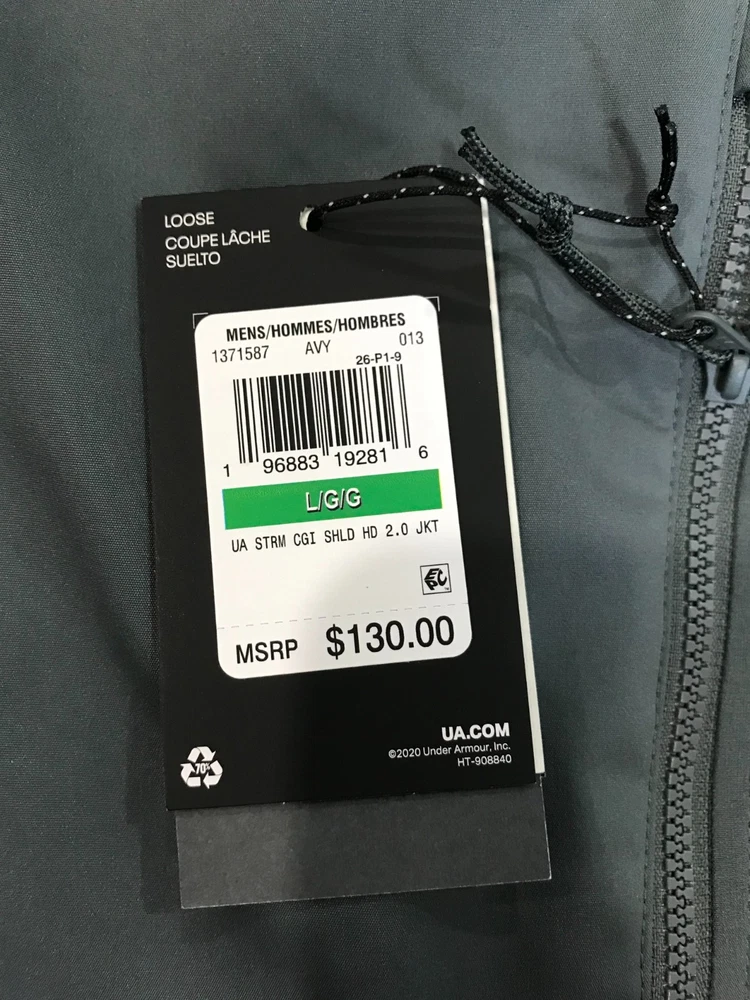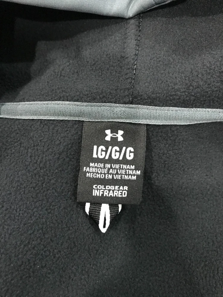 Description: Under Armour Storm Men's (Size L) Pitch Grey Long Sleeve Full Zip CGI Shield 2.0 Hooded Jacket, (See picture) Brand: Under Armour Gender: Men's Size: L Color: Pitch Grey Pattern : Solid Material: 100% polyester Condition: New with tags MSRP: $130 Buy It Now Price: $59.99 Shipping: Plus $8.50 for padded flat rate envelope shipping Note: Picture Accuracy is about 90%. Slight variance in color may result, due to lighting and camera default settings.