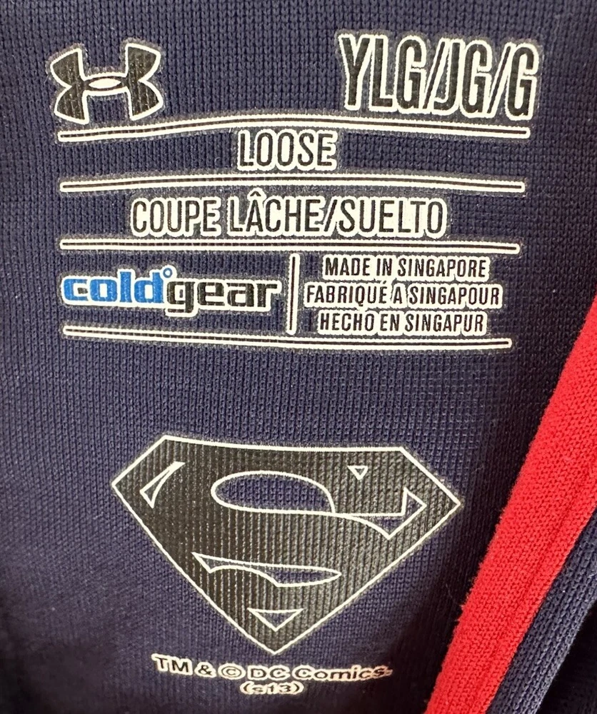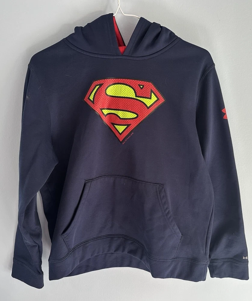 Looking for a cool and comfortable hoodie for your little Superman fan? Check out this Under Armour Superman Hoodie Sweatshirt in blue, size YLG. With a pullover closure and hooded design, it's perfect for keeping your child warm on chilly days. Made by the trusted brand Under Armour, this hoodie features the iconic Superman character and is perfect for both boys and girls. Whether your child is playing outside or running errands, this hoodie is sure to become a favorite. Don't miss out on this fun and functional piece of clothing for your little Superhero!