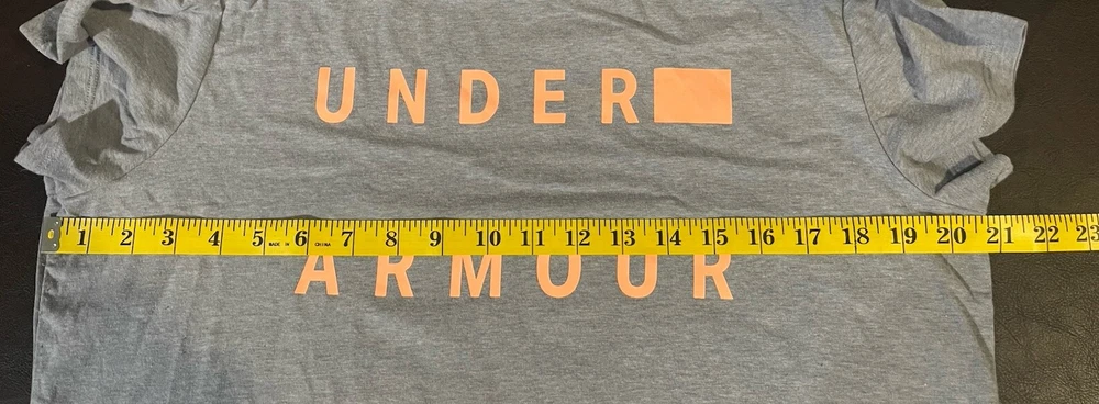 This is a women's Under Armour T-shirt in size large, featuring a solid heather gray color with a peach logo accent. The shirt has a crew neck, short sleeves, and a pullover closure. It is part of the Under Armour HeatGear product line, designed for activities like gym training, cross training, and bodybuilding. The T-shirt is made from breathable fabric, suitable for all seasons, and is machine washable for easy care. Perfect for casual wear or activewear, this modern and sporty top offers a comfortable fit for various physical activities.