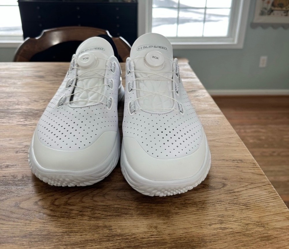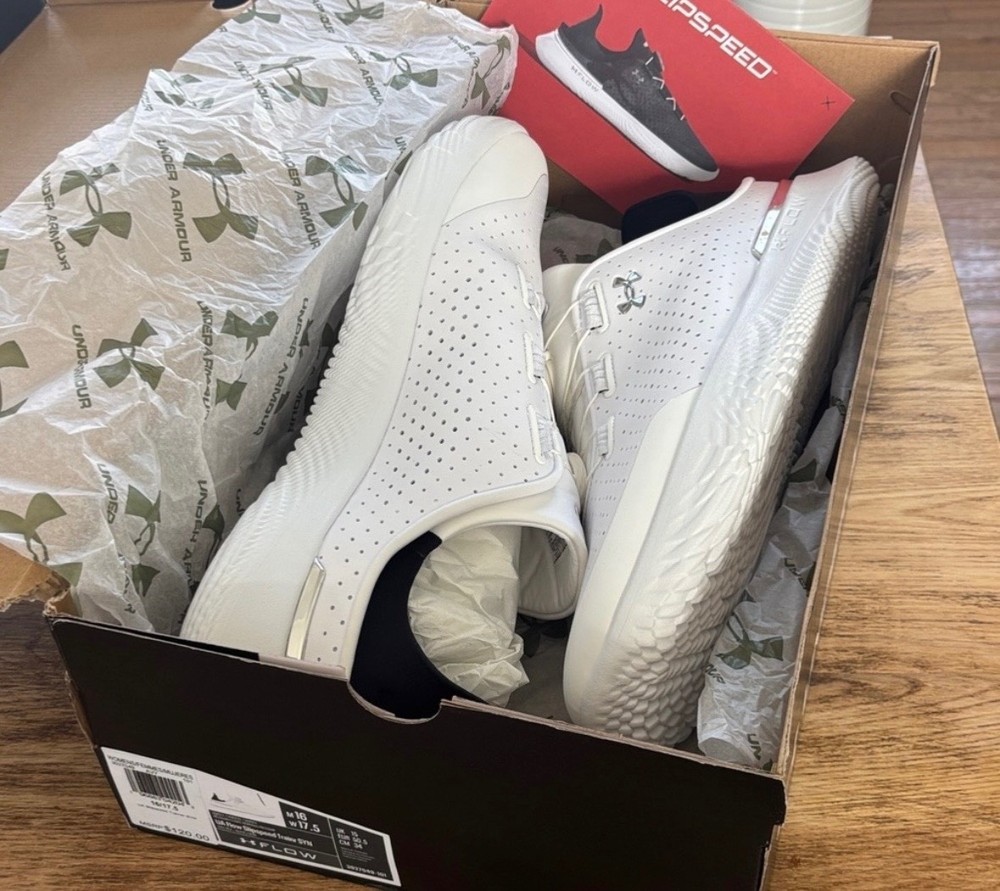 Under Armour UA Flow SlipSpeed Trainer SYN – New in Box Brand new Under Armour UA Flow SlipSpeed Trainer SYN shoes, never worn, new in original box. • Size: Men’s 16 / Women’s 17.5 • Width: Regular • Color: White / Black • Model: UA Flow SlipSpeed Trainer SYN • Closure: BOA dial system for quick, secure fit • SlipSpeed design allows easy transition between training and recovery wear • UA Flow cushioning for lightweight comfort and traction • Unisex style Perfect for training, gym workouts, walking, or everyday wear. Clean, modern look with easy on/off design. Condition: New with box (see photos) MSRP: $120
