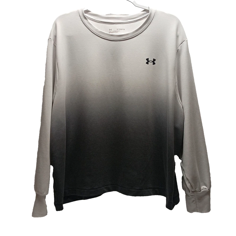 Under Armour UA Women's Rival Terry Radiant Crew 2X Plus Gray Crop Loose Fit Top This item is in good pre-owned condition with minimal washwear. Please note there is a faint pen mark on the left shoulder that could use a spot treatment. See all photos as this is the exact garment you will receive. Measurements taken with item laying flat- armhole to armhole is 27", length from high point of shoulder to bottom hem is 24.5". Polyester blend fabric, machine wash cold. Thanks for looking!