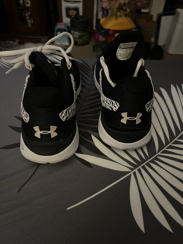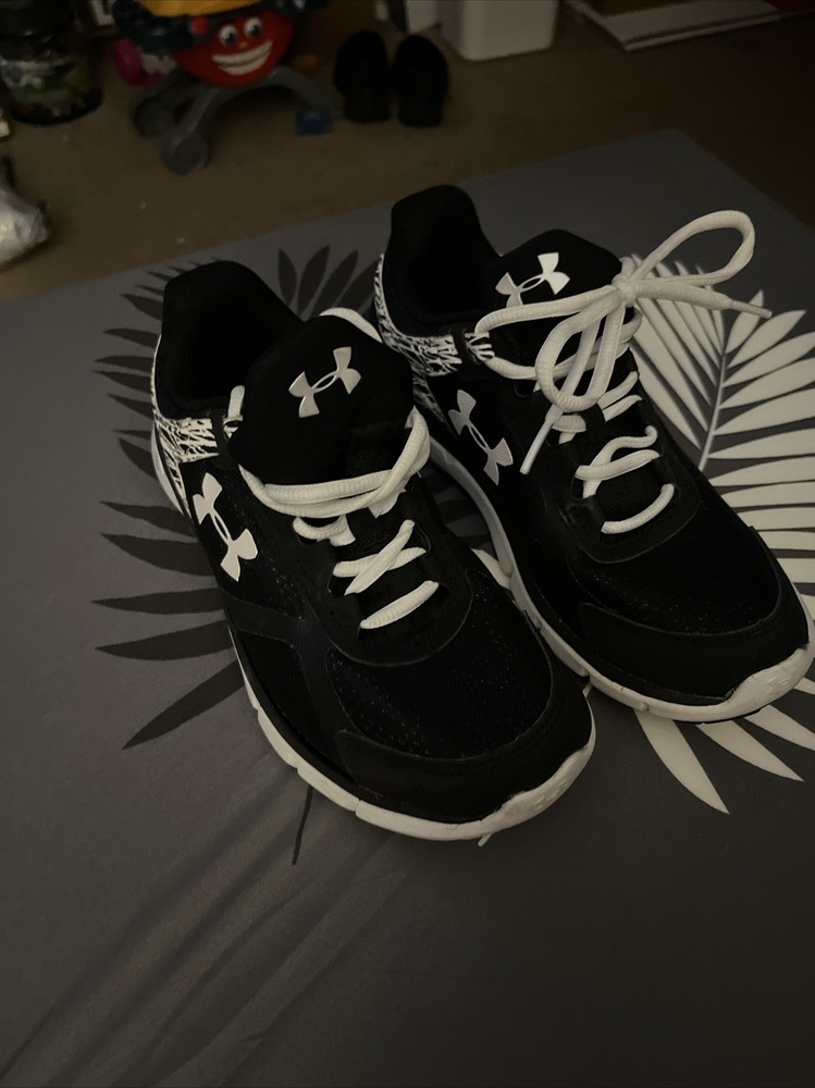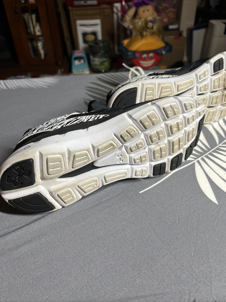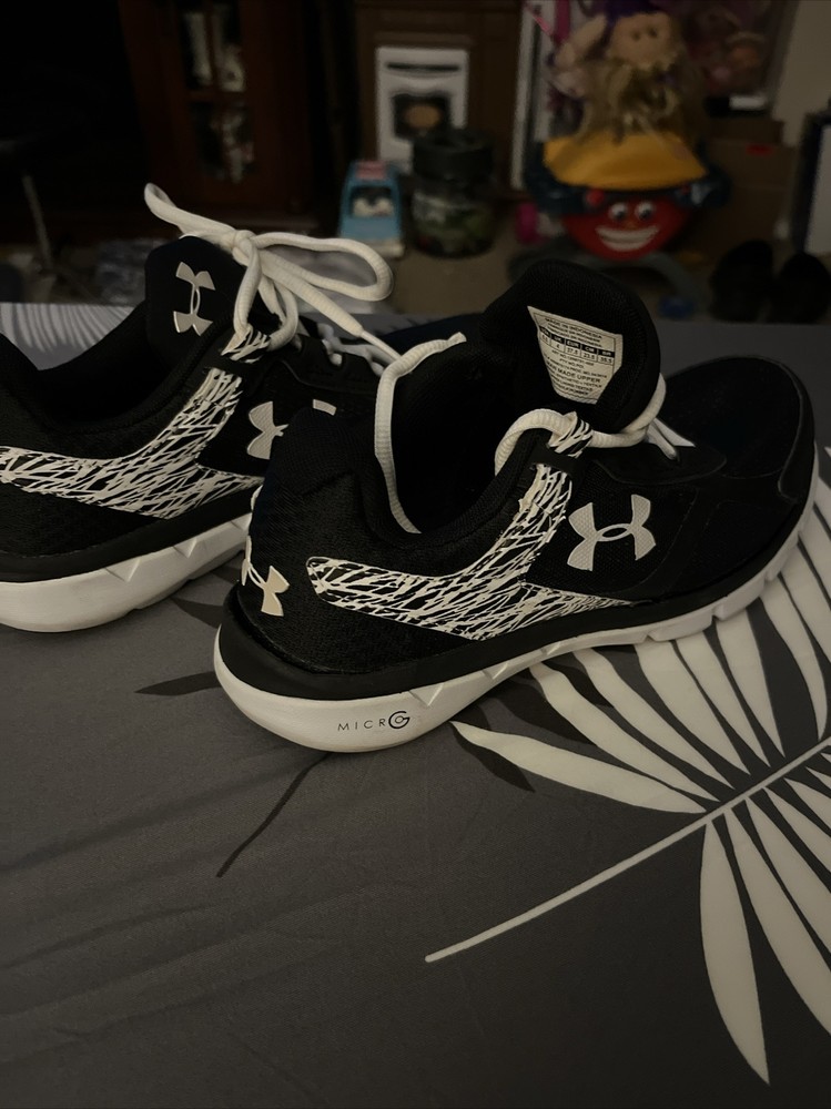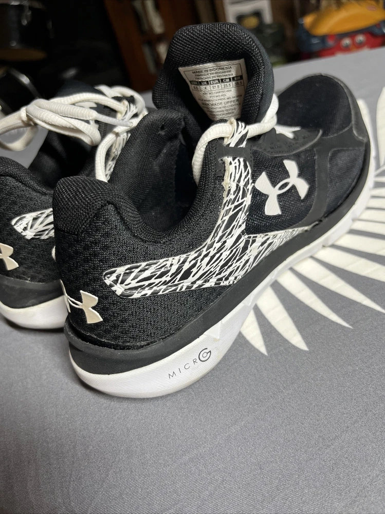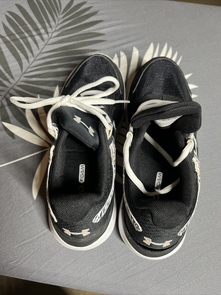 Great pre-loved condition . Show little wear Elevate your running game with these Under Armour Micro G Velocity shoes in a sleek black colorway. Designed with a lace-up closure and synthetic upper material, these sneakers provide breathable comfort and support for all seasons and activities, from running and jogging to casual wear. The geometric pattern and Under Armour logo accents add a touch of style to these athletic shoes, which are available in women's size 6.5 and UK size 4. The rubber outsole material ensures durability and traction, while the blended fabric and synthetic upper material provide breathability and comfort. These shoes are part of the Under Armour Micro G product line and have a style code of 1258731-002. Get ready to take on the great outdoors and sports challenges with these high-performance sneakers.