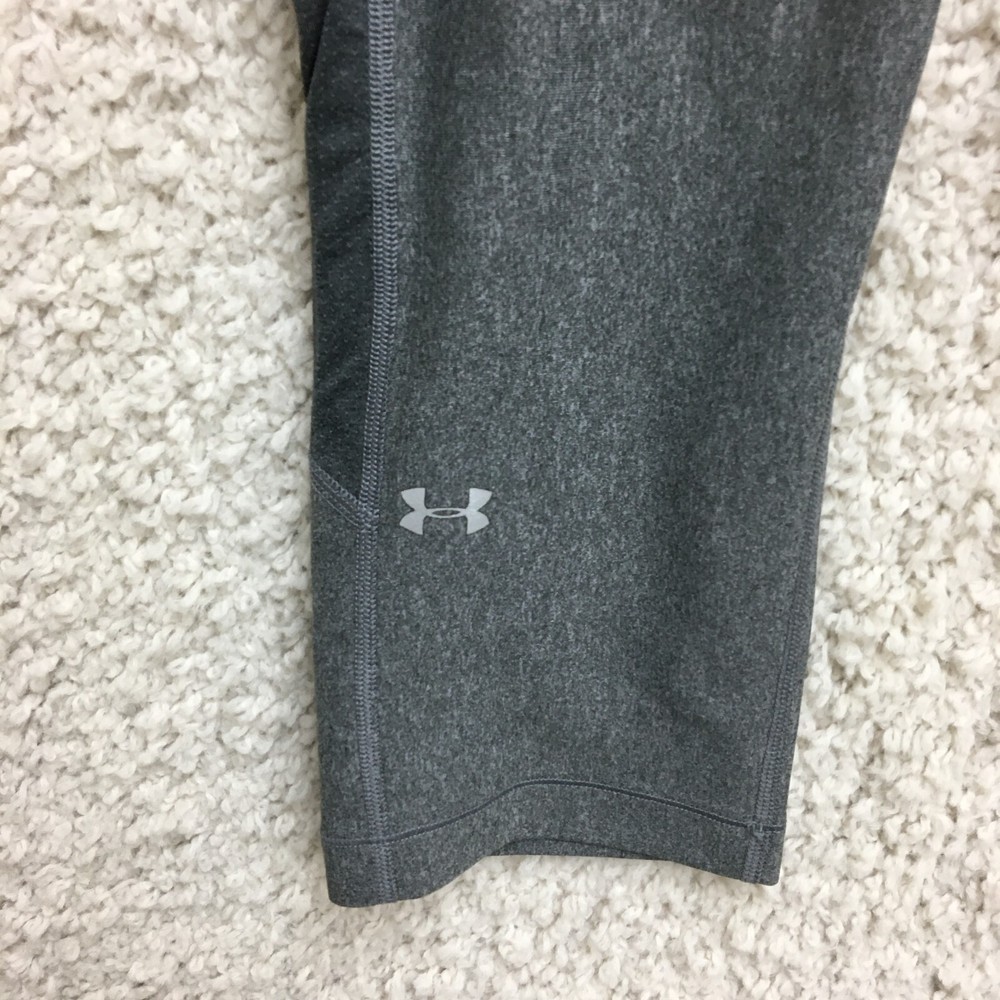 Waist Size: 33 in Type: Leggings Size Type: Regular Garment Care: Machine Washable Material: Polyester, Polyester Blend, Spandex Fabric Wash: Medium Rise: Mid (8.5-10.5 in) Features: Breathable, Comfort, Compression, Easy Care, Elastic Waist, Stretch Country/Region of Manufacture: Vietnam Color: Gray Brand: Under armour Pattern: Solid Accents: Logo Season: Fall, Spring, Summer Inseam: 21.5 in Occasion: Activewear, Casual, Travel Size: XL Style: Capri Theme: Athleisure, Sports Fabric Type: Blended Fabric Department: Women Performance/Activity: Cross Training, Running & Jogging, Yoga Seller Notes: “Very Good Used Condition. Please, See Pictures for Full Condition and Measurements.”