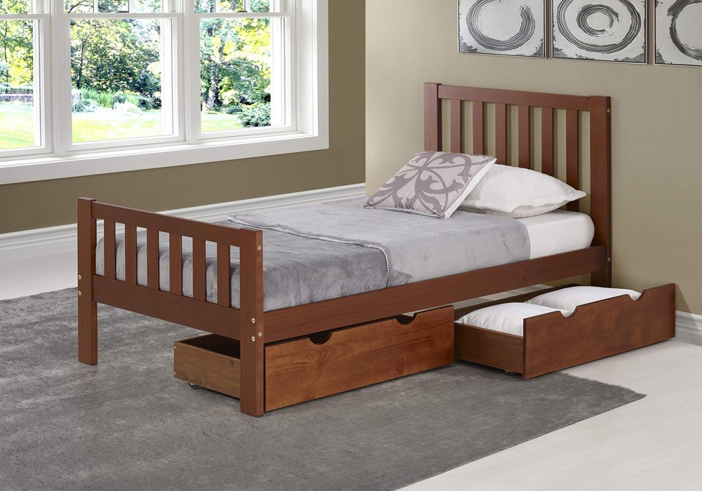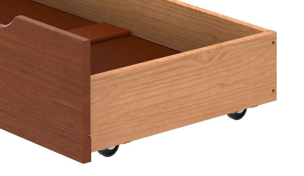 UNDER BED STORAGE CONTAINERS - This set of 2 underbed storage containers adds hidden functional storage space to any bed frame with an underneath clearance of 9.75” or higher. These under bed drawers are an ideal storage solution for small bedrooms. EASY ACCESS - With 4 rolling wheels and cut-out handles, the under bed storage bins provide easy access to all your belongings while maximizing space. Each under-bed storage drawer is separate, giving you the ability to store different items in each one. PREMIUM QUALITY - The storage bins with wheels are constructed of durable wood with an attractive chestnut finish that is at home with a variety of furnishing styles, pairing beautifully with traditional, modern, rustic, and farmhouse bedroom decor. MULTIPURPOSE USE - Whether you’re looking for storage in a little one’s bedroom or your own, these spacious under the bed storage containers have you covered. Use them as under bed shoe storage, for storing toys, seasonal clothes, blankets, and more. PRODUCT DETAILS - Materials: Brazilian Pine and Wood Veneer. Dimensions: Each Drawer - (L) 37” x (W) 20.375” x (H) 9.375”; Interior - (L) 35” x (W) 19.125” x (H) 8”; Fits Under Frames with 9.75” Clearance or Higher. Capacity: 25lbs Each. Color: Chestnut.