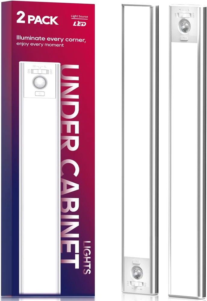 【Bright and Eye-Friendly with Adjustable Brightness】 Under cabinet lighting is equipped with 112LED lamp beads, side-illuminated, the light is refracted to the light guide plate through the reflector, and then evenly distributed on the light surface through the diffusion plate, with a brightness of up to 162 lumens and a wide illumination coverage area. The light is bright, soft and gradual, giving the human eye a short buffer time, effectively protecting both eyes from strong light.The Brightness Adjustment button toggles the brightness between 50%, 75%, and 100%, and a long press adjusts the brightness from 10%-100% 【Motion Sensor Lights Indoor, 4 function modes】Equipped with infrared sensor and light sensor, once someone enters the detection range (distance: 10 feet, angle: 120°), the light will come on immediately and gradually turn off after the person leaves the detection range after 20 seconds. On Mode for continuous illumination, ☼ Mode for day and night sensing, ☾ Mode for sensing in dark environments only, and Off Mode 【Long Battery Life with USB charging】 This under cabinet lighting wireless has a built-in 3200mAh lithium polymer battery that lasts over 90 days. It can work continuously for 9 hours at maximum brightness and more than 60 days in sensor modes. Adopts USB-C charging interface for faster charging (USB-C cables included) Adapter compatibility 【Wide Application and Easy Installication】 The closet lights is suitable for bedrooms, nurseries, closets, closets, cabinets, corridors, workshops, basements, garages, stairwells, garage entrance pantries and other places. The led light strip has a built-in magnet and can be stuck to any iron product, use the included tape and iron sheet to fix the light strip 【Premium Quality Product & Service Guarantee】The under cabinet lights is made of anodized aluminum housing with integrated powerful magnets inside, and the quality is certified by CEC, FCCand RoHs. If you buy our products and encounter any problems during use, please contact us, we will provide you with satisfactory solutions within 24 hours Product Description